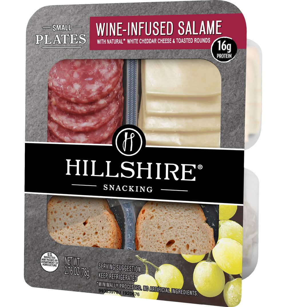 Wine-infused salame, natural white cheddar cheese, and crisp toasted rounds come together in a grown-up twist on snack time. Our Wine-Infused Salame Small Plate meat snack features chef-curated ingredients and flavors such as the spice of cured salame and rich notes of garlic for a truly elevated snacking experience. Try pairing with a fruity Sauvignon Blanc to further enhance the flavors of the savory salame and sharp white cheddar. Perfectly portioned for snacking on-the-go, our Wine-Infused Salame Small Plate has 16 grams of protein in each ready-to-eat serving. Includes one 2.76 ounce package. We’re big believers in a little thing called snack time. To us snacking is not about rushing or mindless eating. It’s about turning a few stolen moments into an elevated celebration that deserves to be savored. We’re here to turn snacking into an occasion, and you’re invited. • Number of servings: 1 • The Hillshire Brands Company, Chicago, IL, 60607