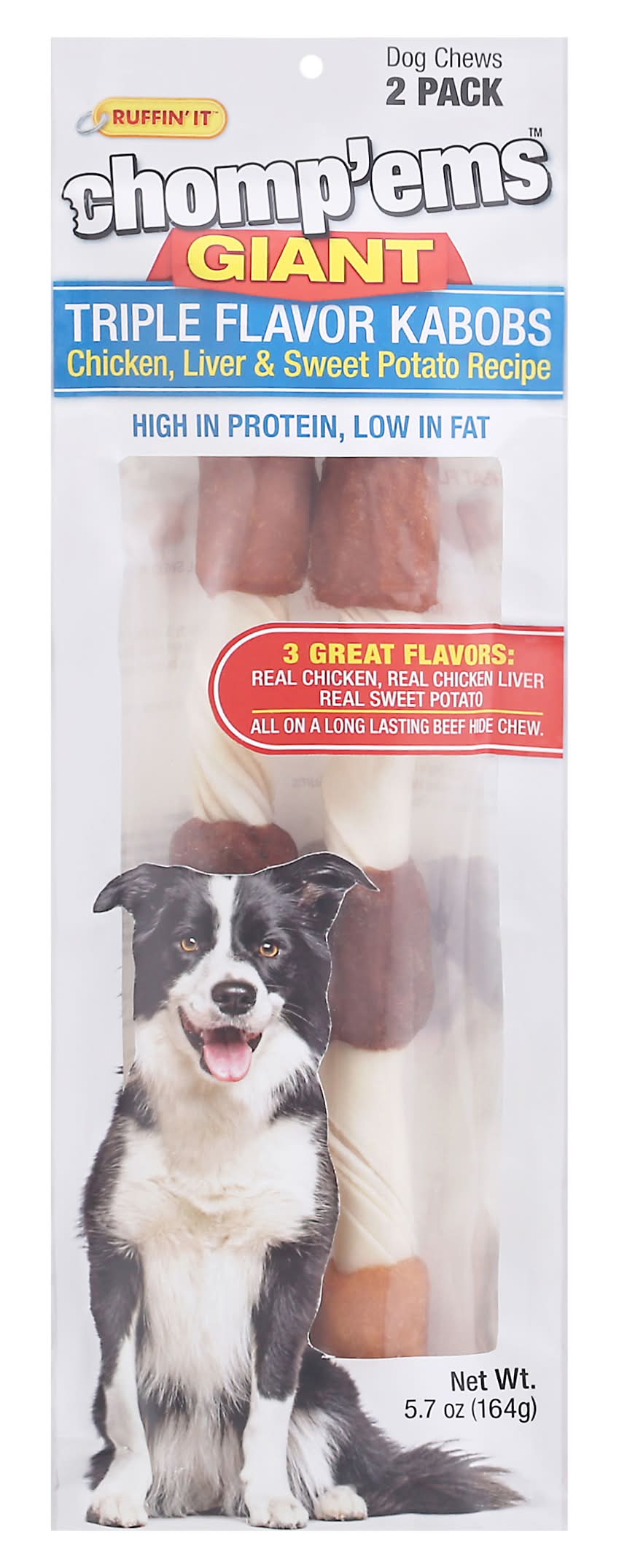 Ruffin' It Chomp'ems Giant Triple Flavor Kabobs Dog Chews (5.7 oz)