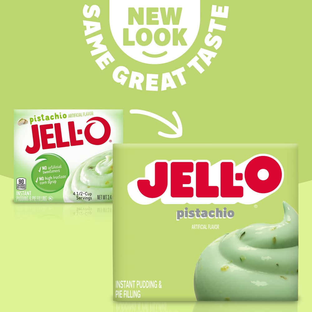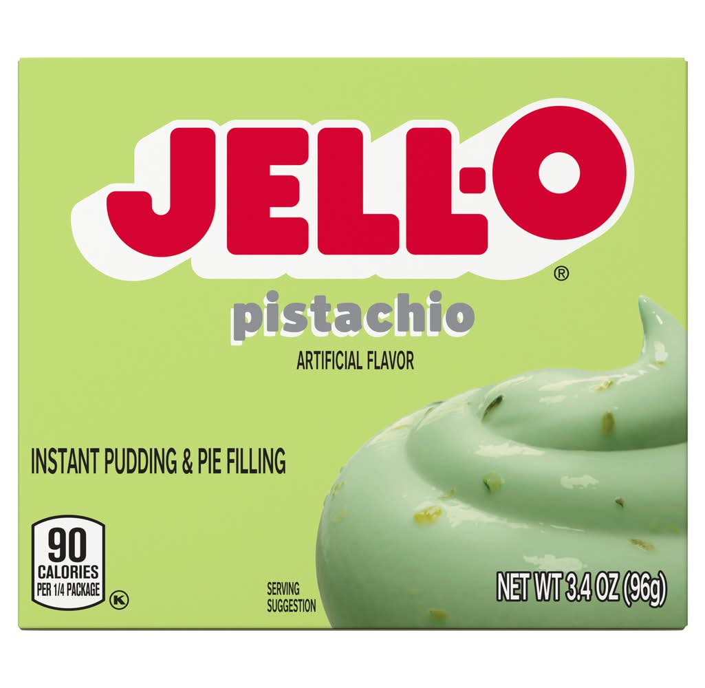 Snack happy. Jell-O Pistachio Artificially Flavored Instant Pudding Mix & Pie Filling tastes delicious whether you enjoy it as a treat or use it as an ingredient in your favorite dessert recipes. Add some wonder to your day with a delicious pistachio dessert. Fun to make with your kids, our artificially flavored pistachio pudding mix can also be used to create a poke cake, tasty crepes or pistachio pie filling. Our artificially flavored pistachio pudding is ready in as little as five minutes. Simply stir milk into the pudding mix and allow to set. Every Jell-O pudding mix comes packaged in a 3.4-ounce sealed pouch. Pudding fun in every bite. Kraft Foods, Chicago, IL, 60601