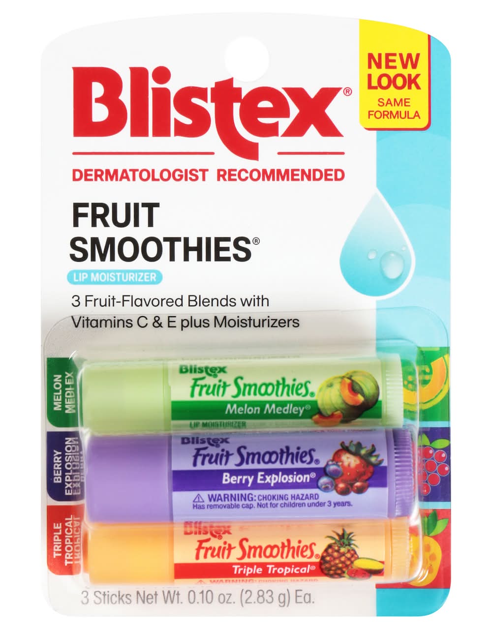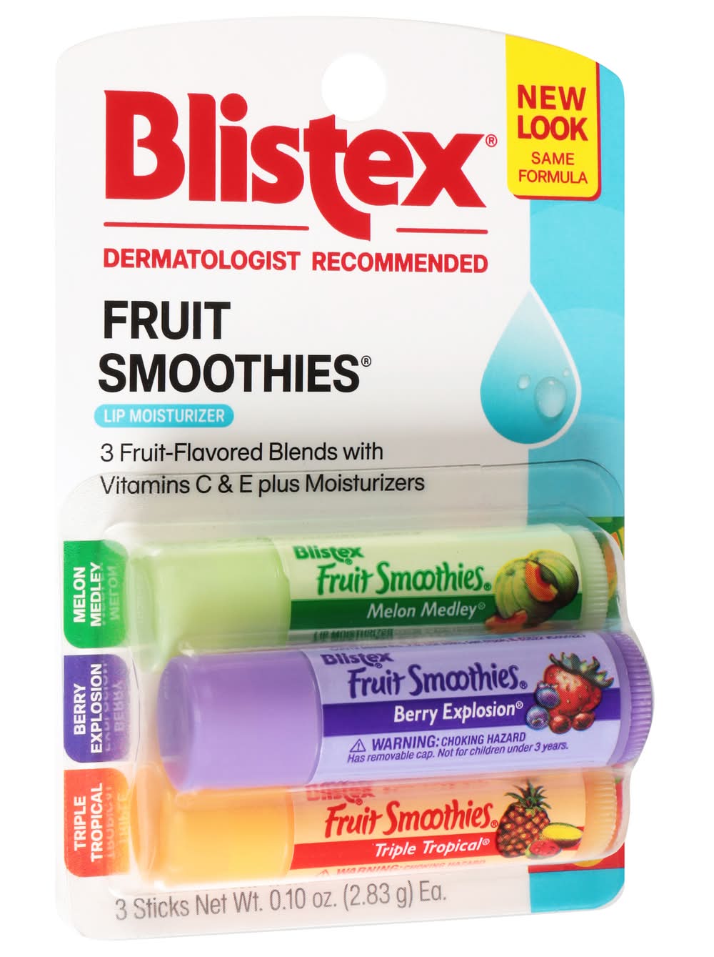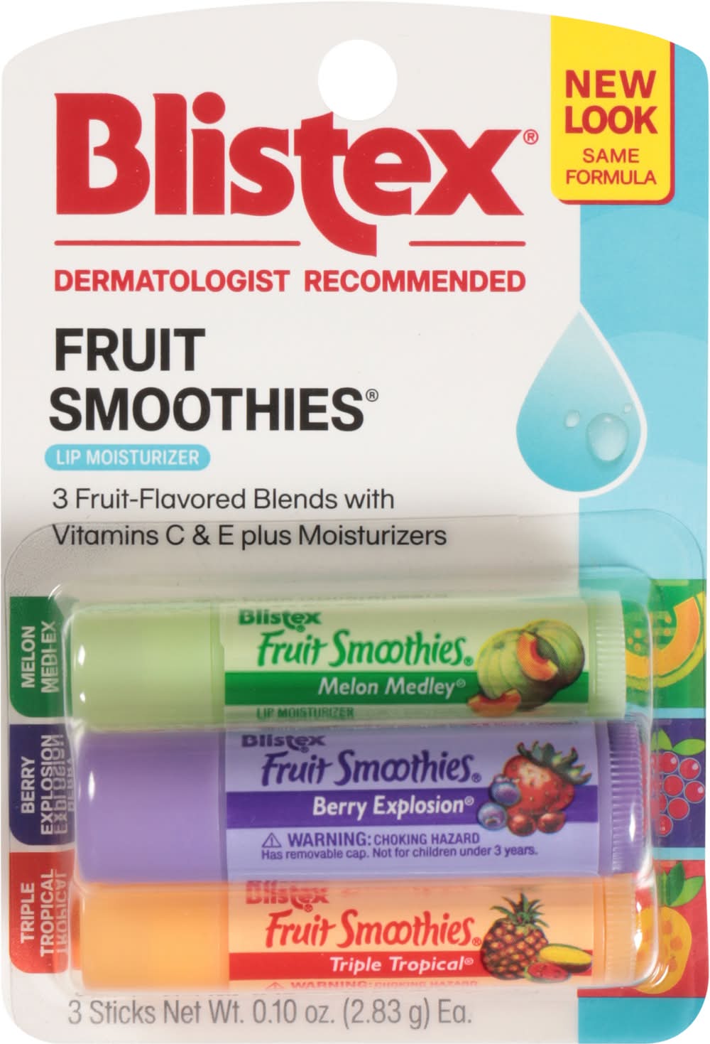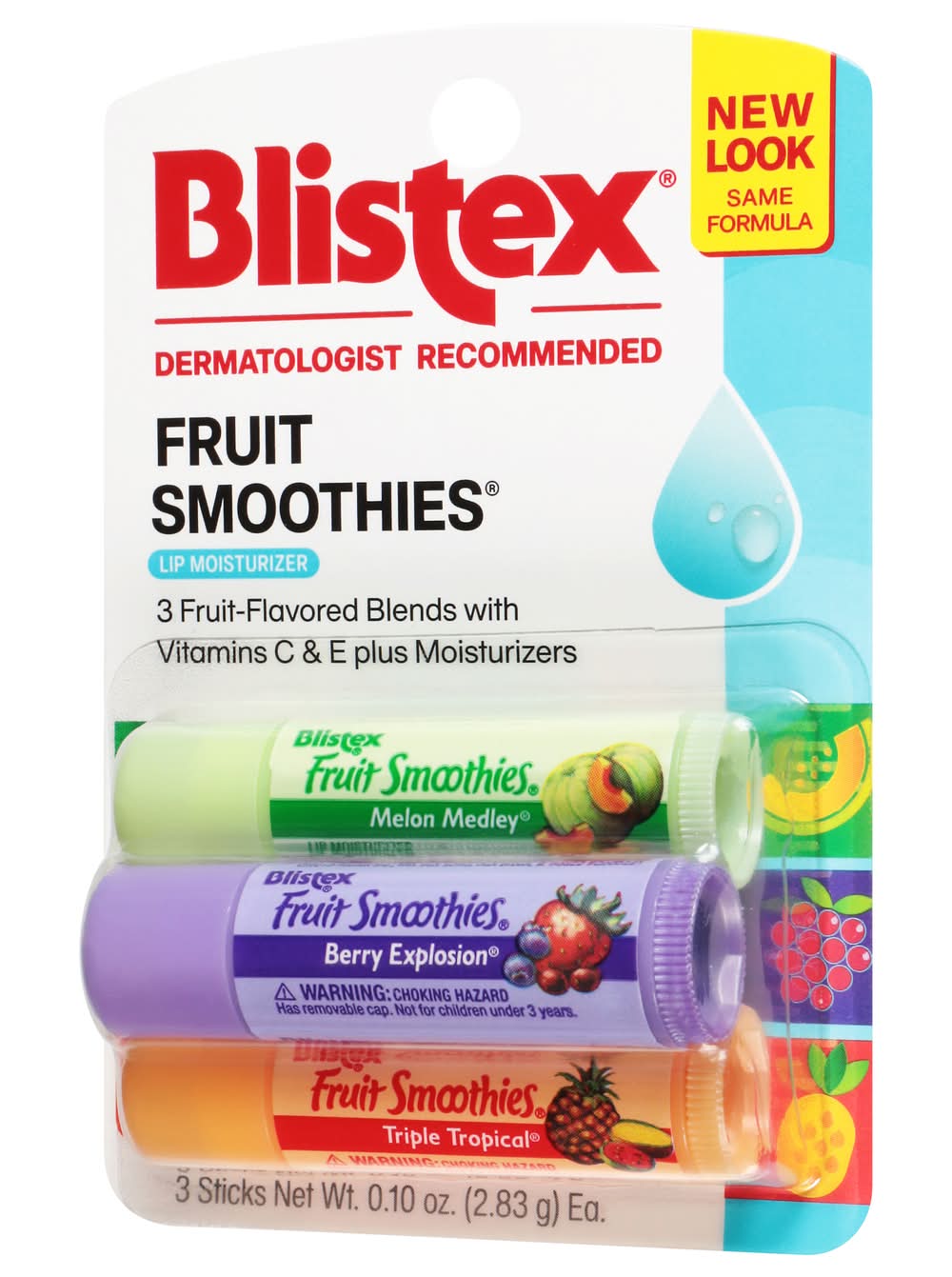 Melon Medley/Berry Explosion/Triple Tropical Lip Moisturizer • Blistex Inc., PO Box 5392, Oak Brook, IL • Packaging: Reusable