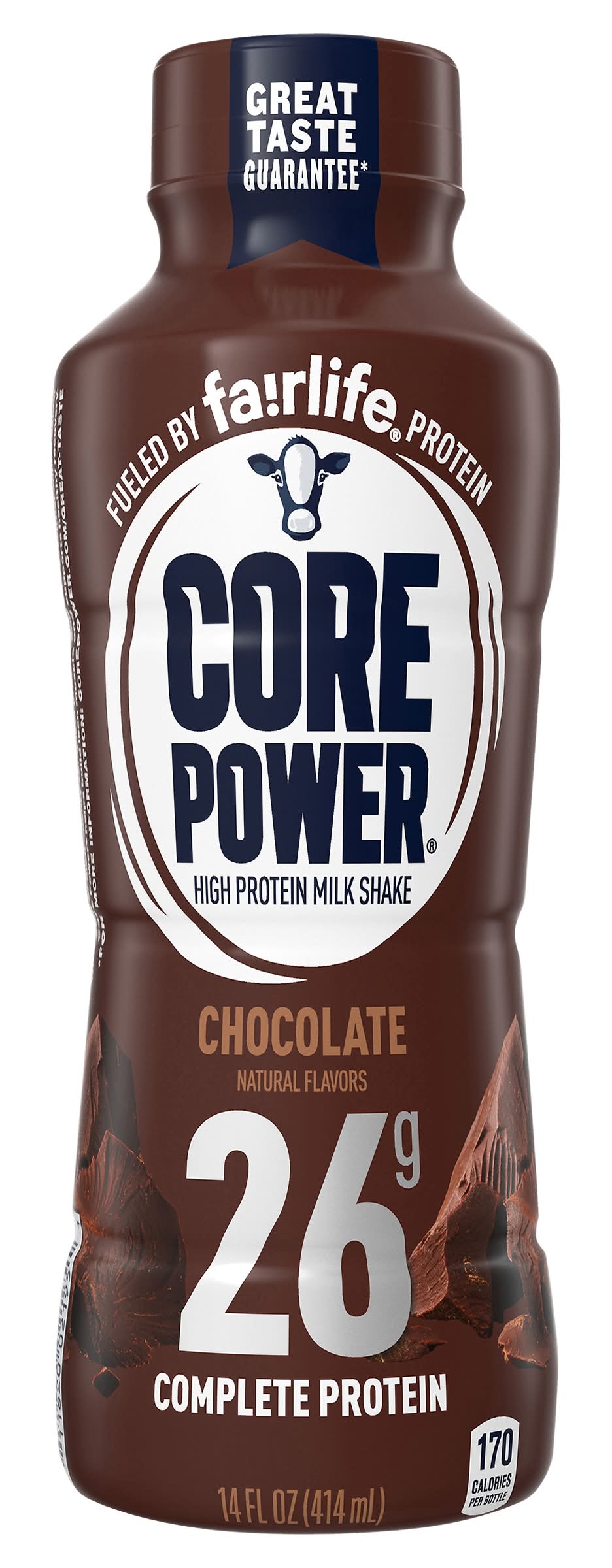 Natural flavors. 170 calories per bottle. 26 g complete protein. Lactose free. Gluten free. Homogenized. What makes core power so unique is pure, fresh ultra-filtered milk. With 26g of high quality complete protein and all 9 essential amino acids, core power helps build lean muscle and supports healthy recovery. • Flavor: Chocolate • Packaging: Reusable