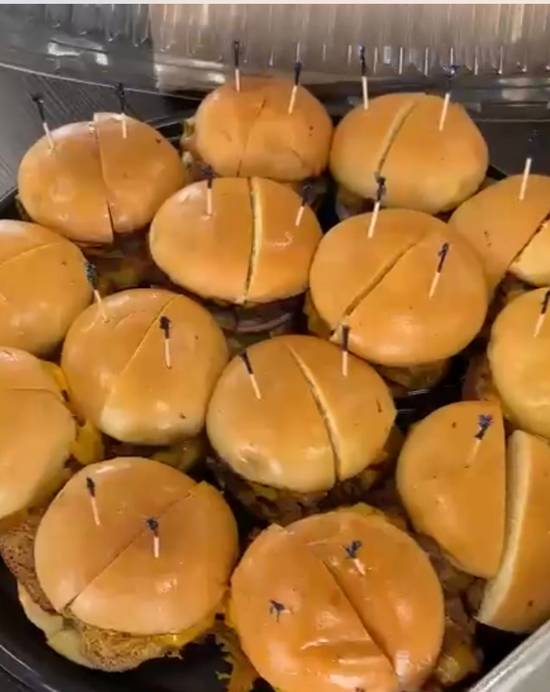 14 Single Smash Burgers with Vegan Cheese and Caramelized Onion, served with Smash Sauce on the side.