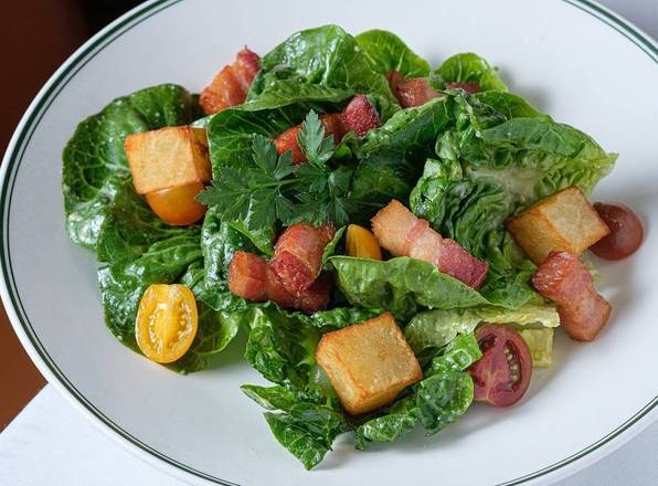 Romaine lettuce, heirloom tomatoes, potato croutons, bacon lardons, marinated mushrooms, and Dijon vinaigrette.