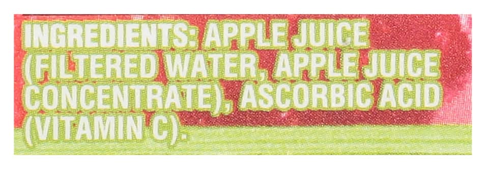 Ingredients: Apple Juice (Filtered Water, Apple Juice Concentrate), Ascorbic Acid (Vitamin C)
