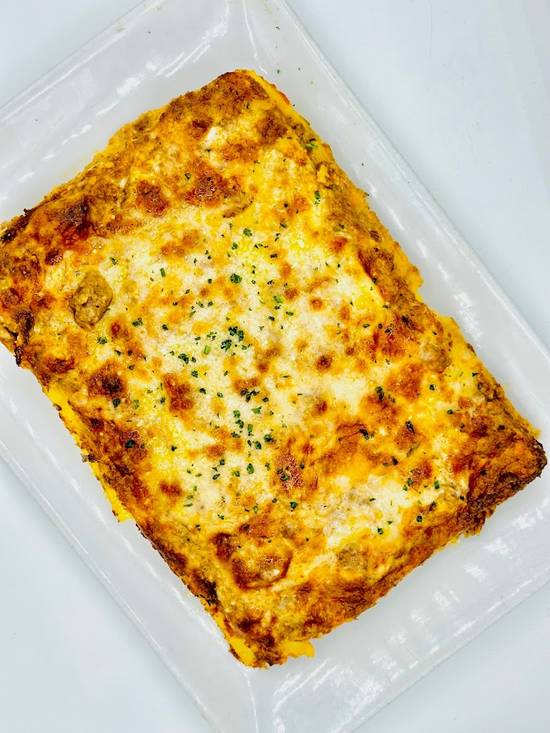 Meat sauce Bolognese style, bechamelle, Parmigiano reggiano cheese Made to share