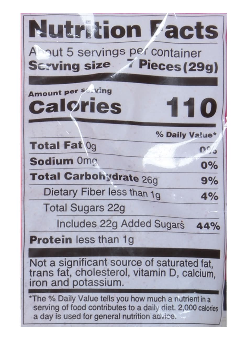Ingredients: Sugar, Glucose Syrup (from Wheat or Corn), Gelatin, Caramel Color, Red 40, Agar - Agar, Contains Less than 2% of: Citric Acid, Artificial and Natural Flavors Carnauba Wax, White Beeswax, Yellow Beeswax Contains: Wheat, Corn, Wheat, Milk