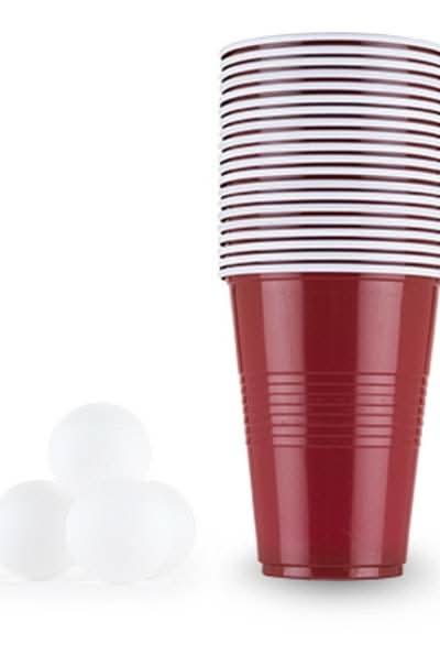 Included in the True Beer Pong Kit are 20 red cups and 4 ping pong balls, along with instructions to facilitate game setup and play.