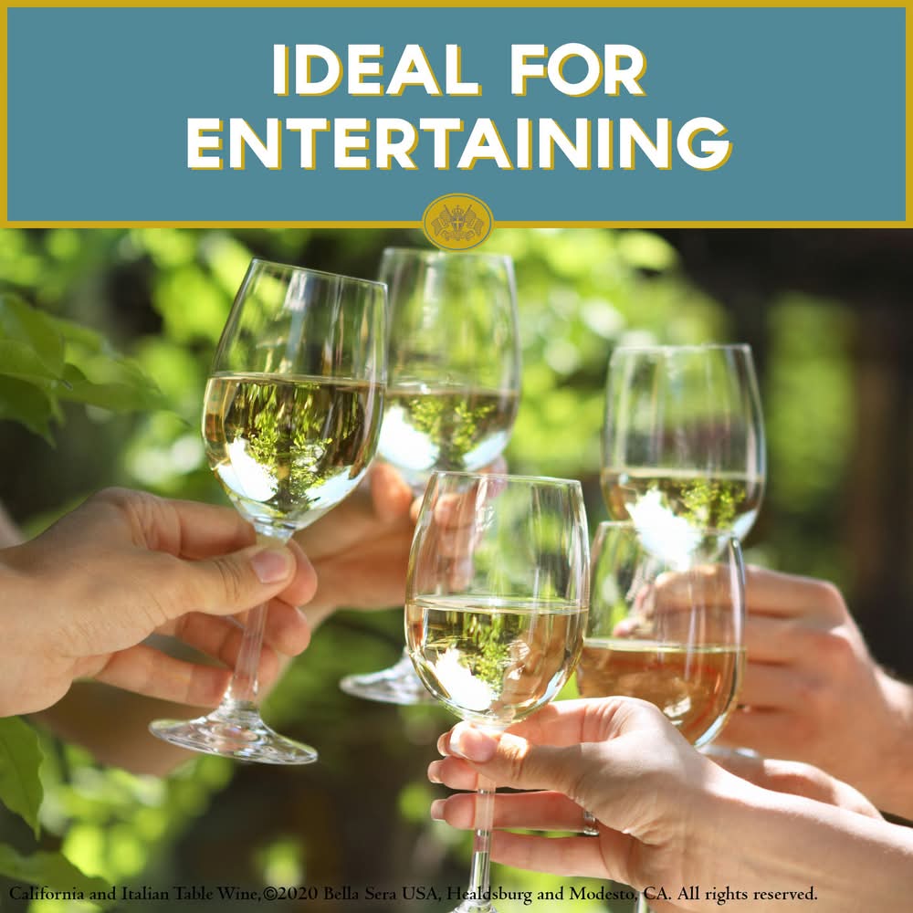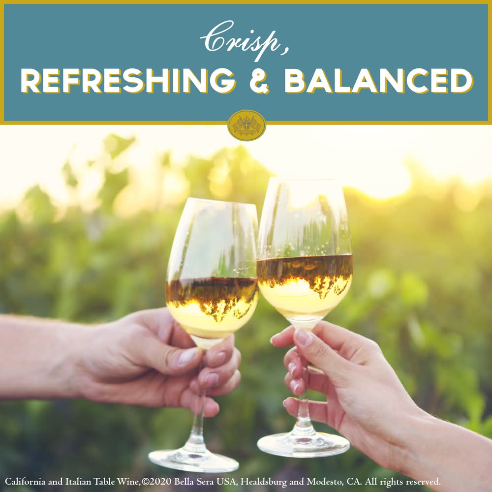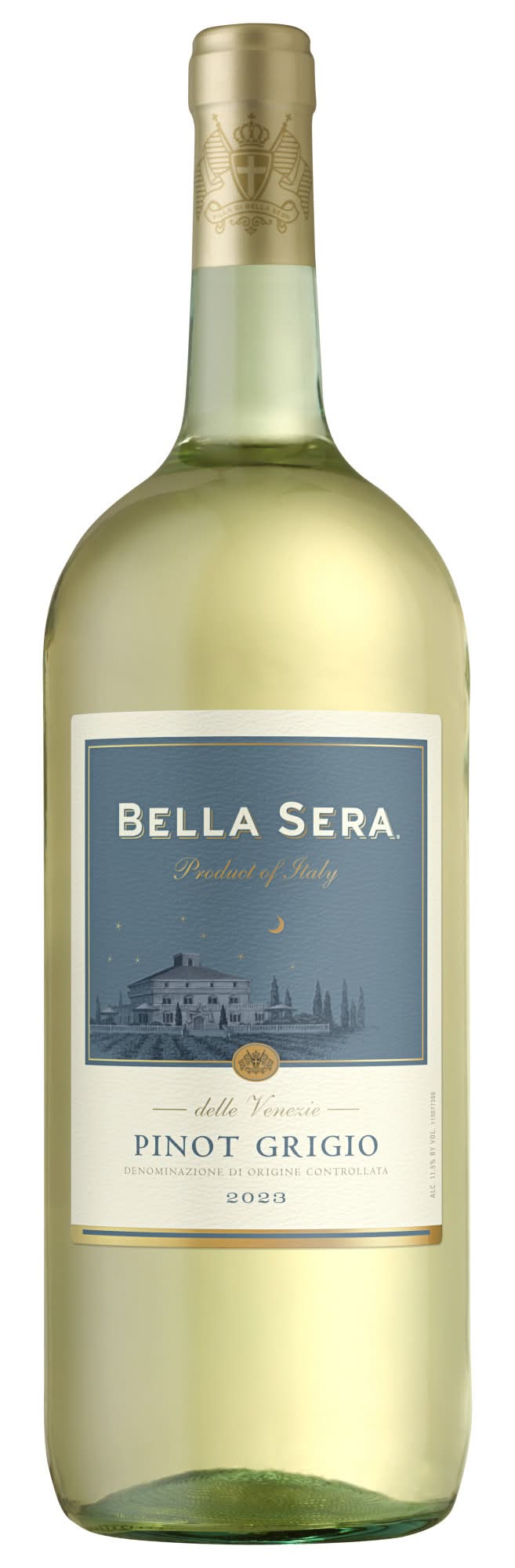 Bella Sera Pinot Grigio White Wine is one of America's most loved Pinot Grigios. Crisp, dry and refreshing, this Italian Pinot Grigio blends notes of fresh citrus and pear with inviting ripe apple to create a perfectly well-balanced wine. Enjoy this dry white wine with light pasta, fresh vegetables and chicken. Offering the equivalent of two standard 750 mL bottles, this 1.5 L bottle is ideal for entertaining or enjoying with a group of friends. This Italian wine comes from the Veneto wine region in northeast Italy. Savor the moments that make life beautiful with Bella Sera's award-winning wines. • Alcohol by volume: 12% • 2016
