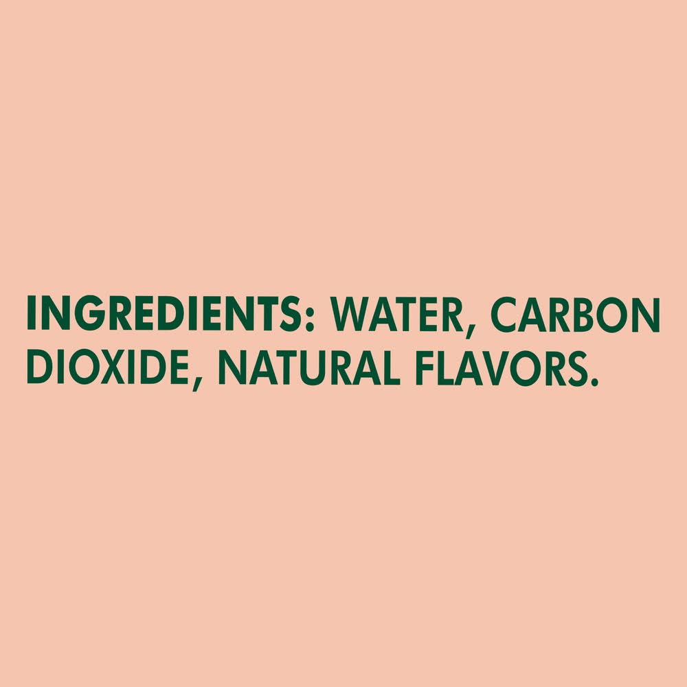 Ingredients: Water, Carbon Dioxide, Natural Flavors Contains: peanuts, eggs, fish, Crustacean shellfish, soybeans, tree nuts, wheat, milk, Sesame