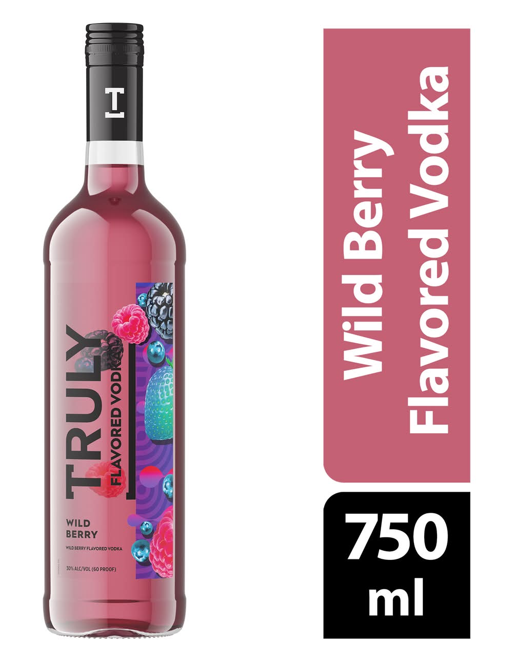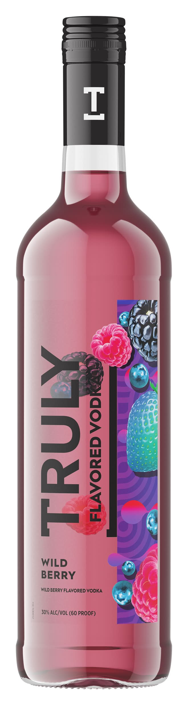 Truly Vodka is made from a cane sugar base, just as its seltzer, and infused with 5% real fruit juices and natural flavors to deliver a refreshing, dynamic drinking experience. And at only 100 calories per serving, you won't have to sacrifice calories for a flavor-packed vodka, featuring a blend of raspberry, blackberry and strawberry flavors. • Flavor: Wild berry • Alcohol by volume: 30%