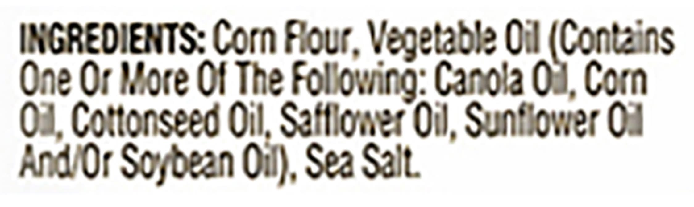 Ingredients: Corn, Vegetable Oil Contains One or More of the Following: Canola, Corn, Cottonseed, Safflower, And/Or Soybean Oil, Sea Salt Contains: Soybeans