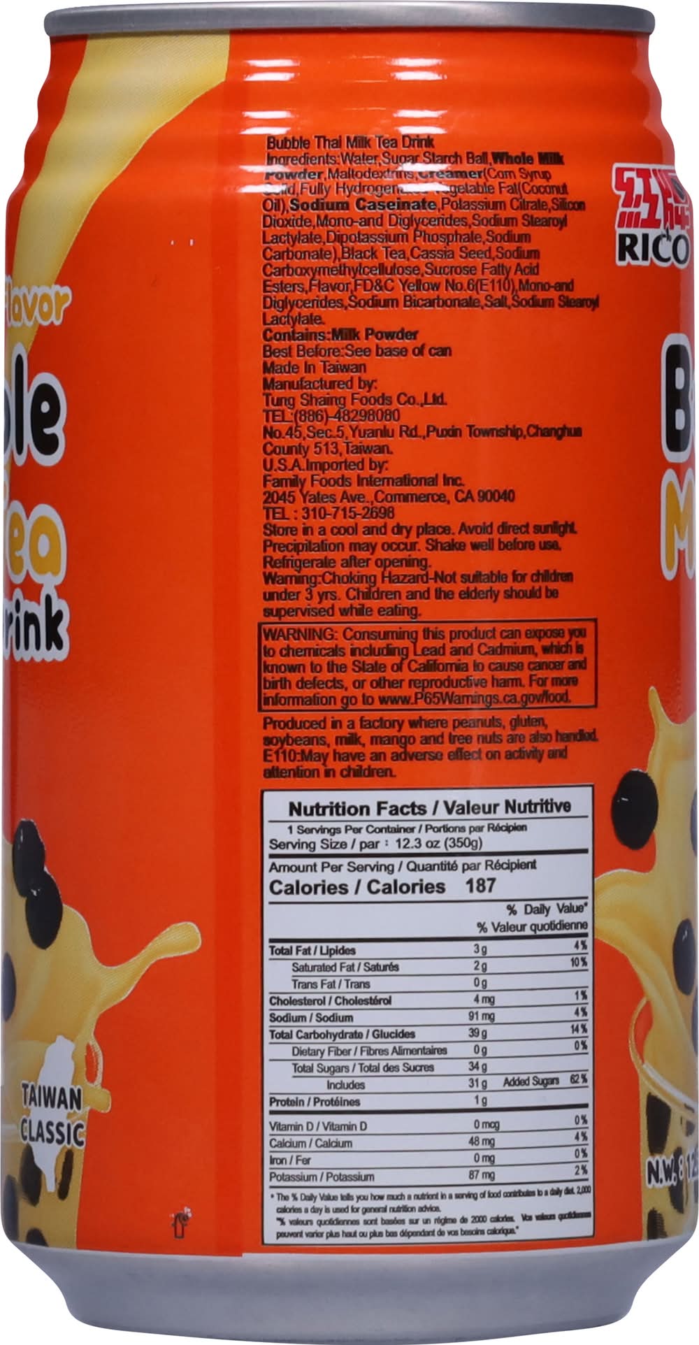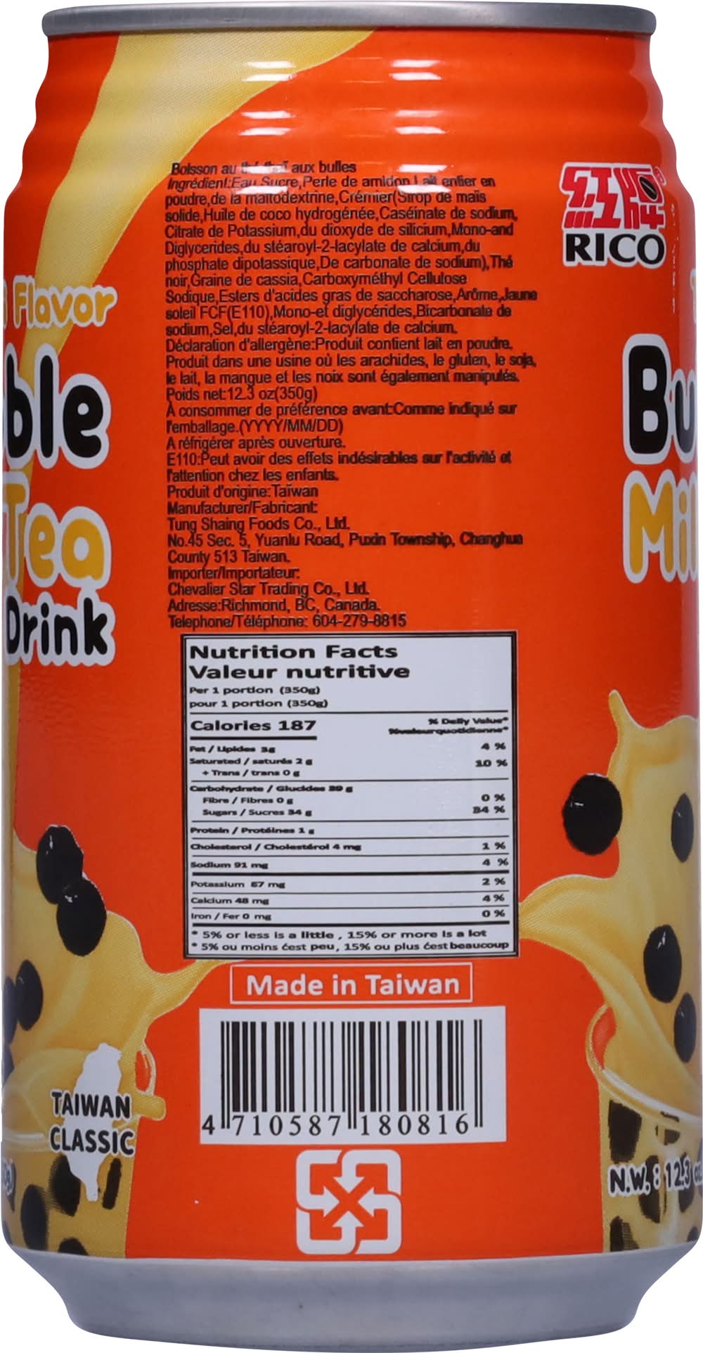 Rico Thai Flavor Bubble Milk Tea Drink (12.3 oz)