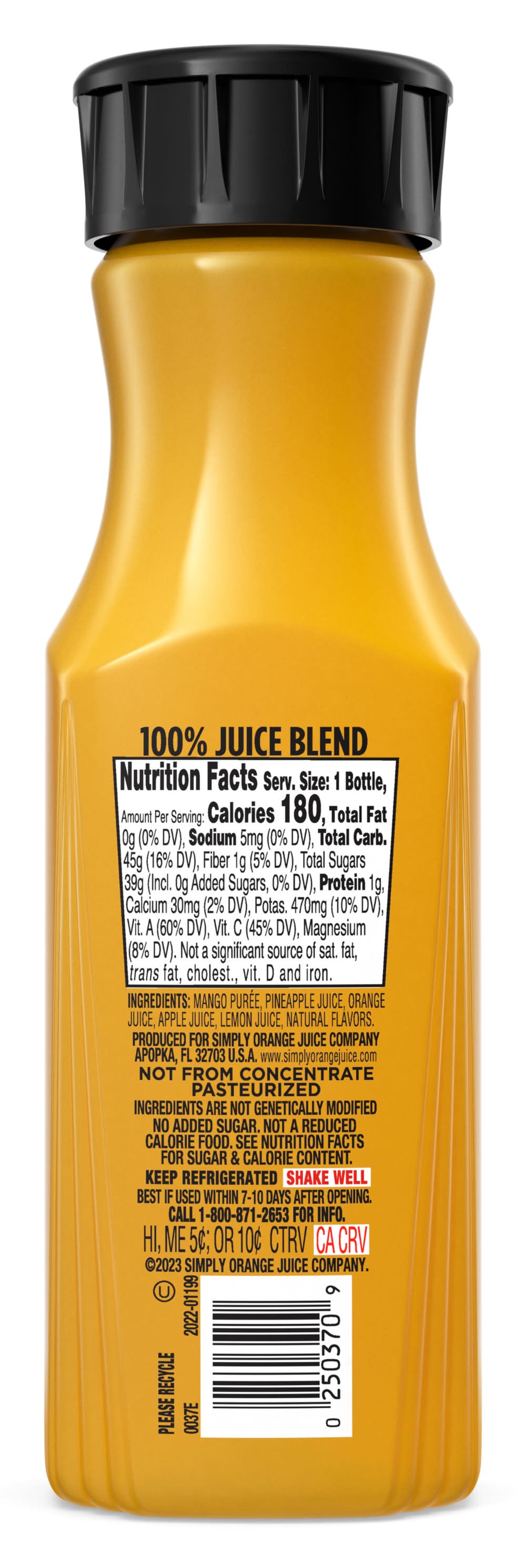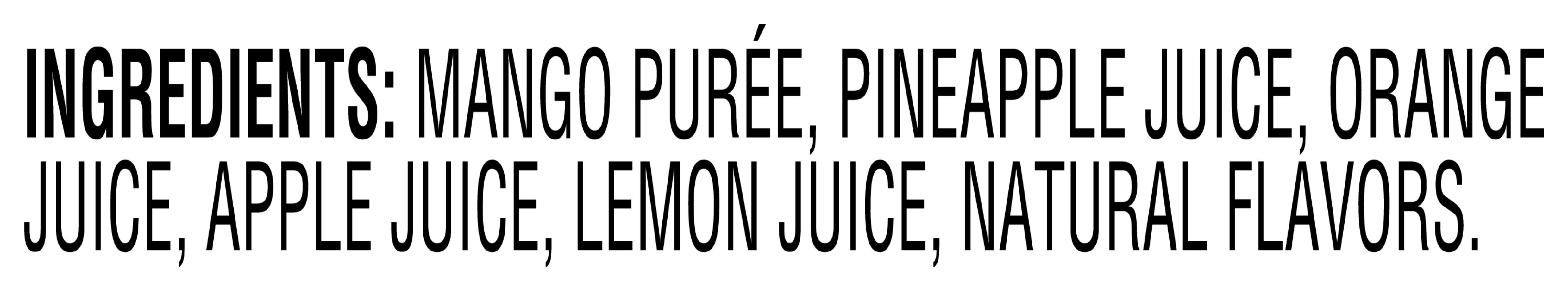 Ingredients: Mango Purée, Pineapple Juice, Orange Juice, Apple Juice, Lemon Juice, Natural Flavors.