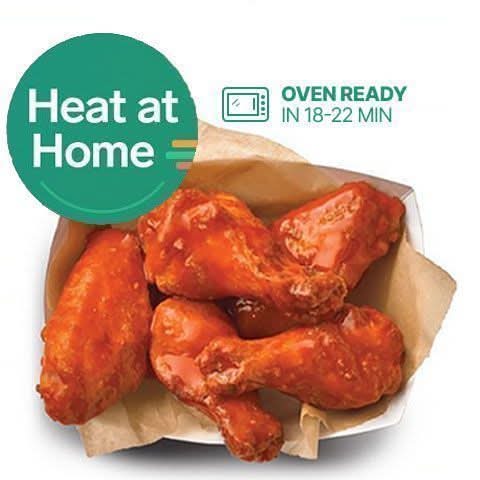 Ready to Heat fully cooked Buffalo Chicken Wings. Bake at 450 degrees for 18-22 minutes until hot and crispy. Time and temp may vary depending on oven. Enjoy! Brand: 7-select