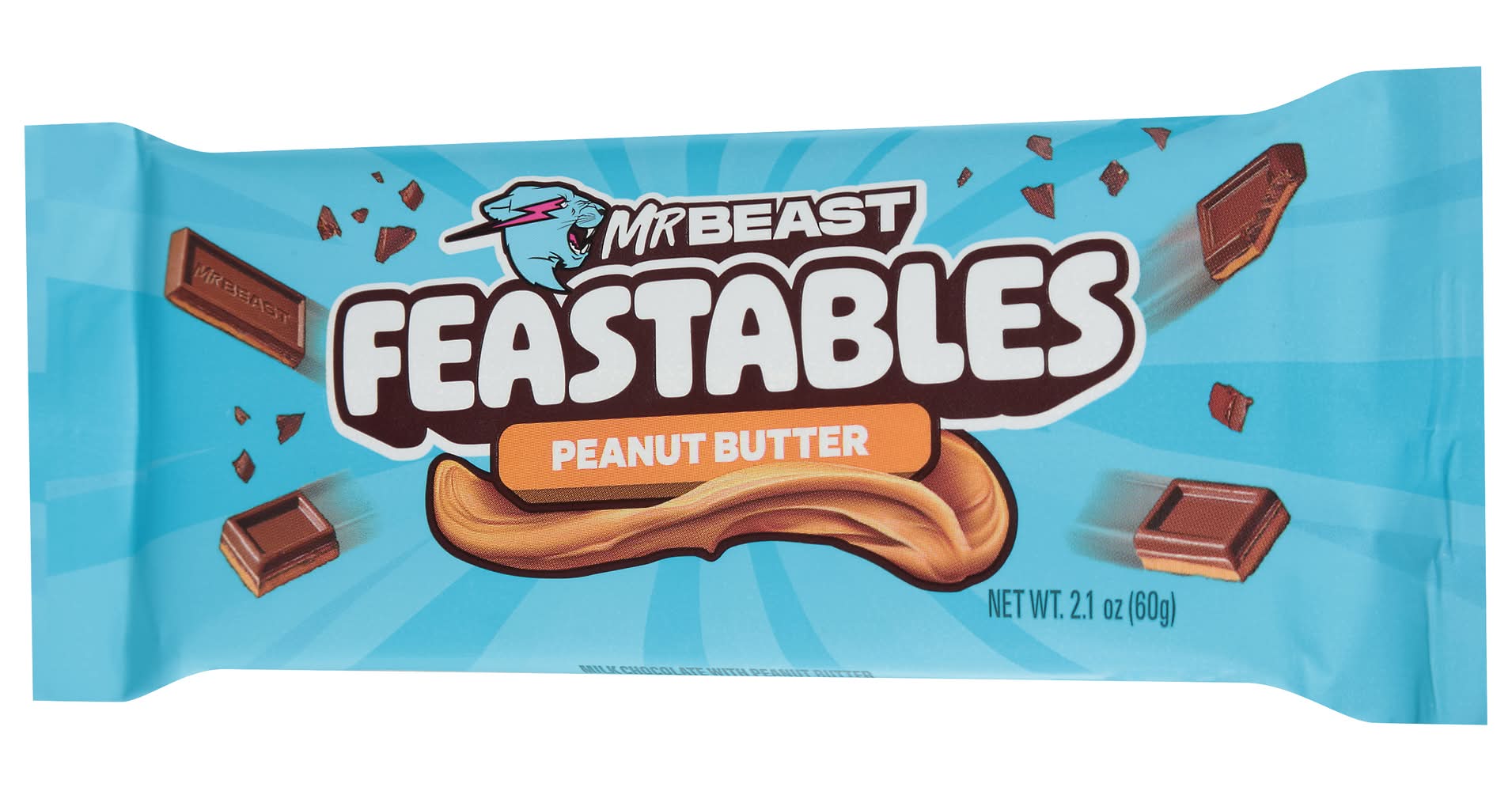 A beast of smooth milk chocolate and creamy peanut butter. • Brand: Feastables • Flavor: Peanut butter