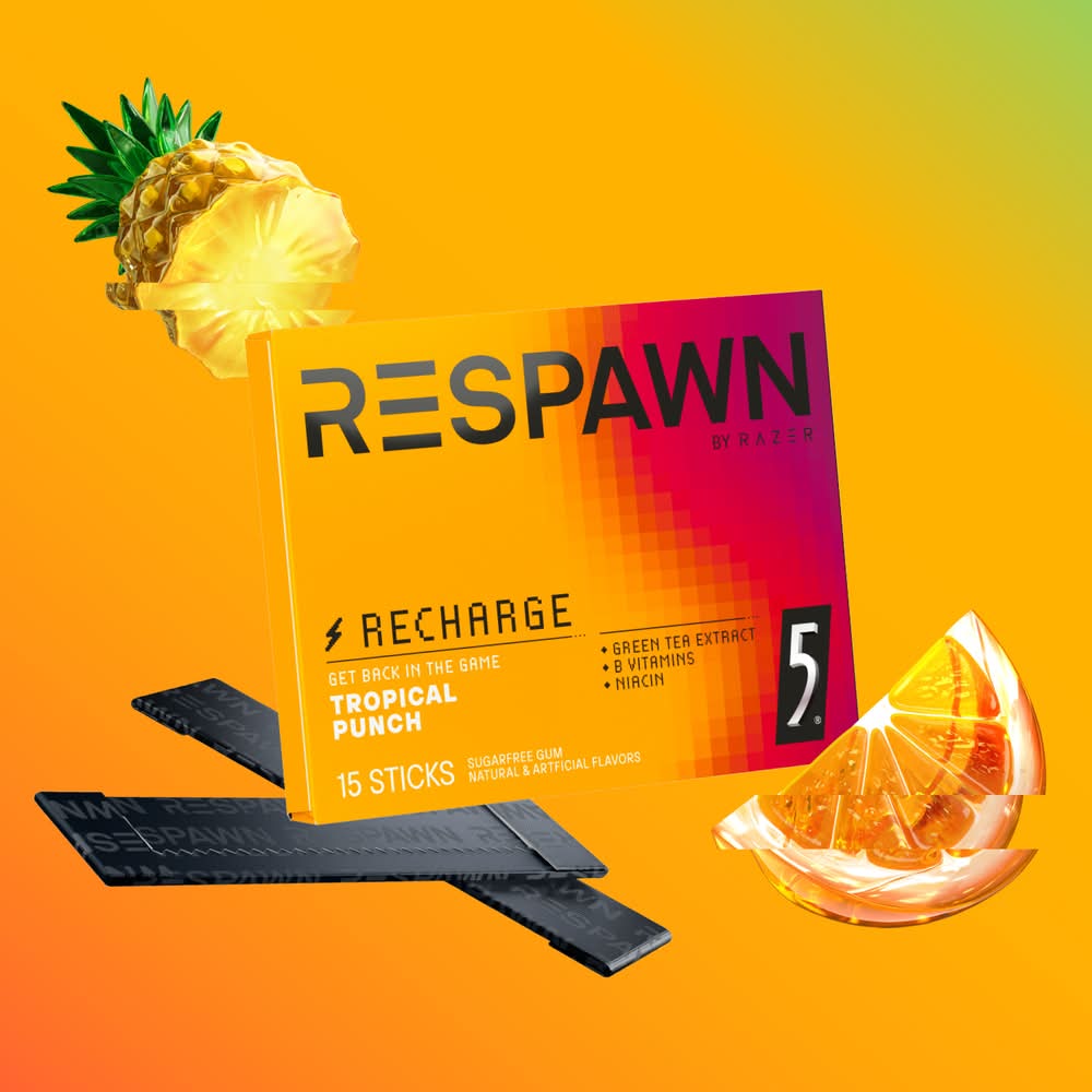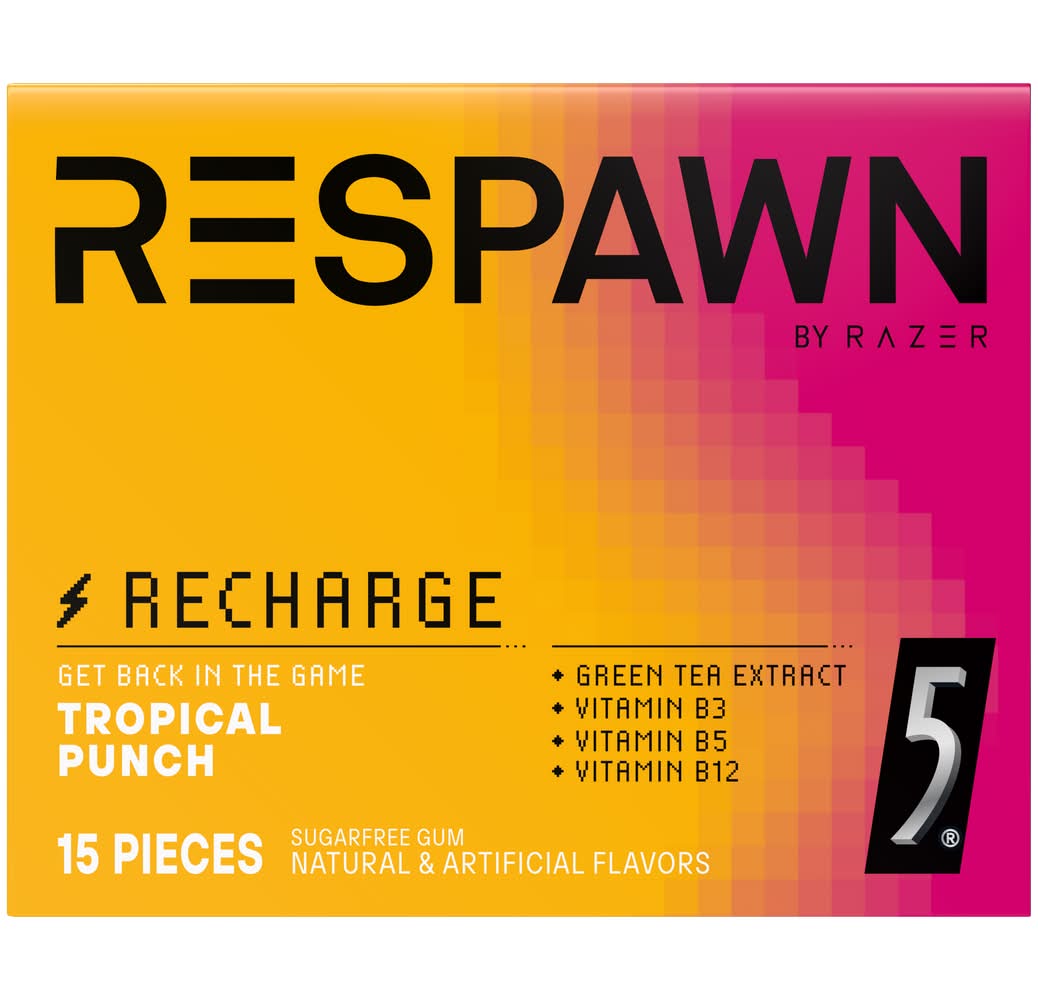 5 Gum Respawn Recharge Sugar Free Chewing Gum, Tropical Punch (15 ct)
