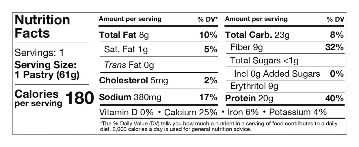 Calling all chocolate lovers: this is the snack for you! Treat yourself to the thick and delicious Chocolate Cake Tasty Pastry and indulge in a guilt-free chocolate experience! Each pastry has 20g of protein, 170 calories, and just 5g net carbs. • Brand: Legendary foods • Flavor: Chocolate • gluten-free