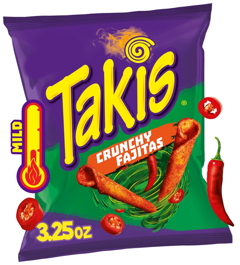 Tired of bland and boring snacks, tasteless tortilla chips, flavorless pretzels, or the same old potato chips? Change the way you munch with Takis Rolled Corn Tortilla Chips and give your taste buds the treat of deliciously intense flavor. We know the urge for a flavor-packed snack can strike at any time, leaving you in a less-than-stellar mood and putting a damper on your otherwise fantastic day. This is why we paved the way with these uniquely shaped chips that unleash tantalizing waves of flavor and fire up your tastebuds with every bite. Pack a bag to give yourself a tasty pick-me-up at school, be ready to munch away while spending the day hanging with your friends, or grab a handful for when you need a boost of flavor while hunting for new adventures. Not only are Takis rolled corn tortilla chips the ultimate snack, but they are also a great food for sharing with friends and family. Share a snack with your squad and transform a low-key hangout into a delicious celebration, or turn the vibes up to ten on your next road trip. • Brand: Takis • Flavor: Mild spicy