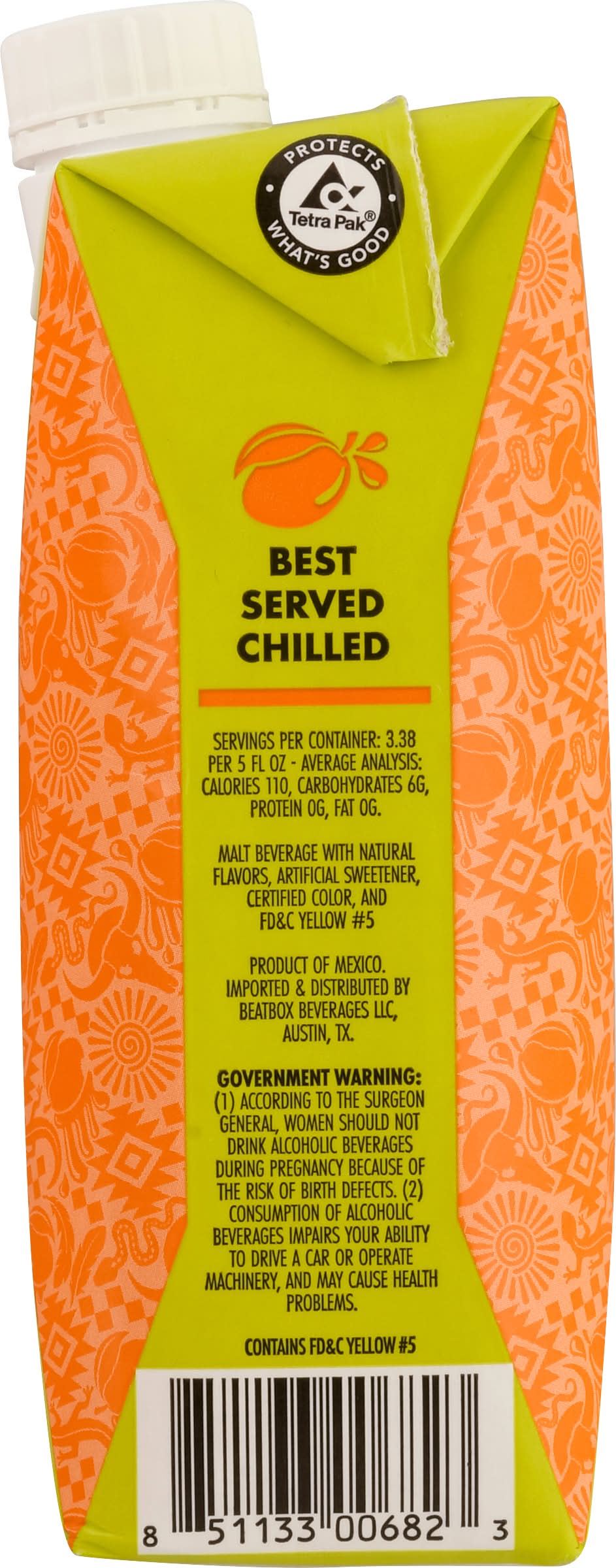 Malt Beverage, Juicy Mango Flavored • Brand: Beatbox • Flavor: Mango • Alcohol by volume: 11.1%