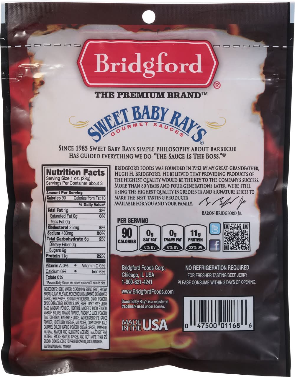 Original Beef Jerky • Brand: Bridgford • Bridgford Foods Corporation, Chicago,IL,800-621-4241