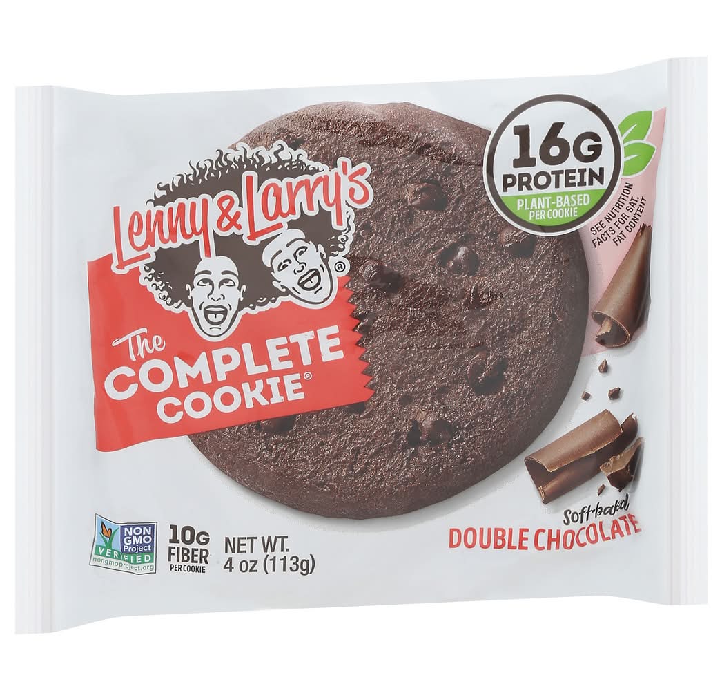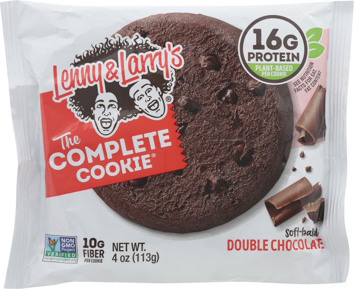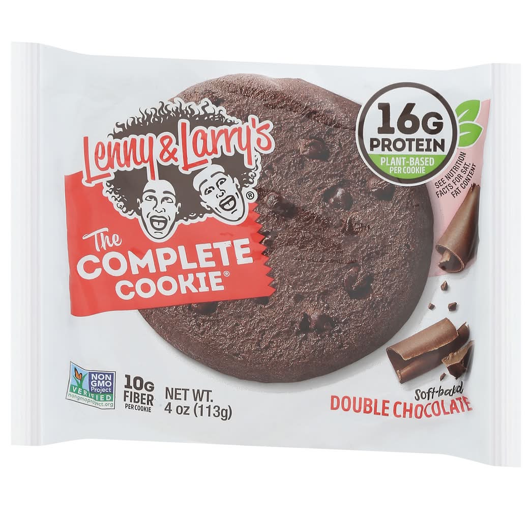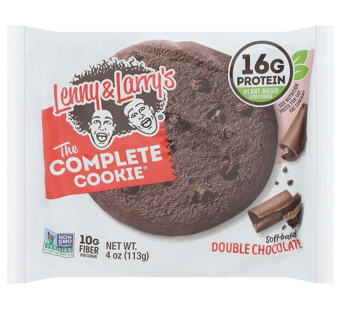 Complete Cookie Double Choocolate, 16g Plant-Based Proteins (per cookie), 10g Fiber (per cookie), No Soy, No Dairy, No egg, Vegan, 0g Sugar Alcohols • Brand: Lenny & larry's • Flavor: Double chocolate • kosher, vegan, GMO-free