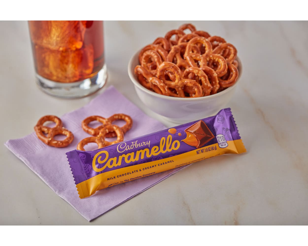 The ultimate end of week treat! Made with rich, creamy milk chocolate filled with smooth caramel, this delicacy is best enjoyed after a long week of being on the go. This box of kosher, individually wrapped CADBURY CARAMELLO bars is ideal to have in your kitchen cabinet or desk drawer for easy access throughout the day. Whether you enjoy this delicious milk chocolate candy alone or share it with co-workers, friends and family members, it's sure to live up to your dessert expectations from the first bite. Share and savor each taste of sweet and creamy caramel chocolate goodness chilled in the fridge, added to baked goods, paired with popcorn at movie night or taken straight from the wrapper for a treat like no other. Add some enhancement to your tasty homemade treats! Throw a few sections of CADBURY CARAMELLO caramel bars on top of your brownies, cookies or ice cream sundaes for an extra decadent dessert that those around you will love after lunch or dinner. Looking for a way to celebrate special occasions? CADBURY CARAMELLO treats make the perfect Valentine's Day, Easter, holiday and Halloween candy bars in addition to their suitability as everyday treats. Have a bite for yourself and you'll understand why! • Brand: Cadbury • Flavor: Milk chocolate-caramel