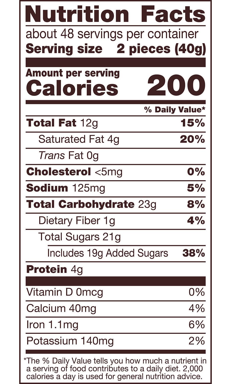 offer a harmonious blend of creamy milk chocolate and smooth peanut butter. Ideal for a variety of occasions, these candies can enhance game nights, parties, or movie marathons. They are versatile enough to be enjoyed on their own or as an addition to baked goods and desserts. Suitable for inclusion in lunch boxes or as a midday treat, these peanut butter cups are also a fitting choice for festive occasions, easily fitting into stockings, candy bowls, or gift bags for various holidays. • Brand: Reese's • Number of servings: 48 • The Hershey Company, PA, 17033-0815 • Packaging: Reusable