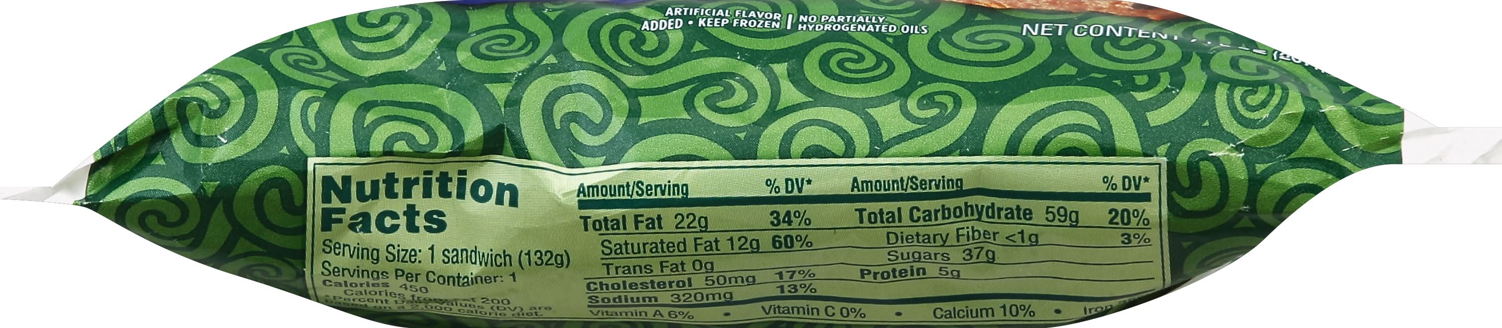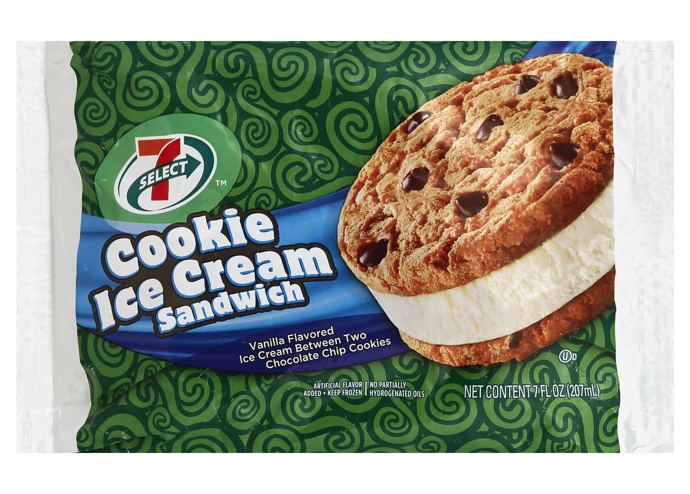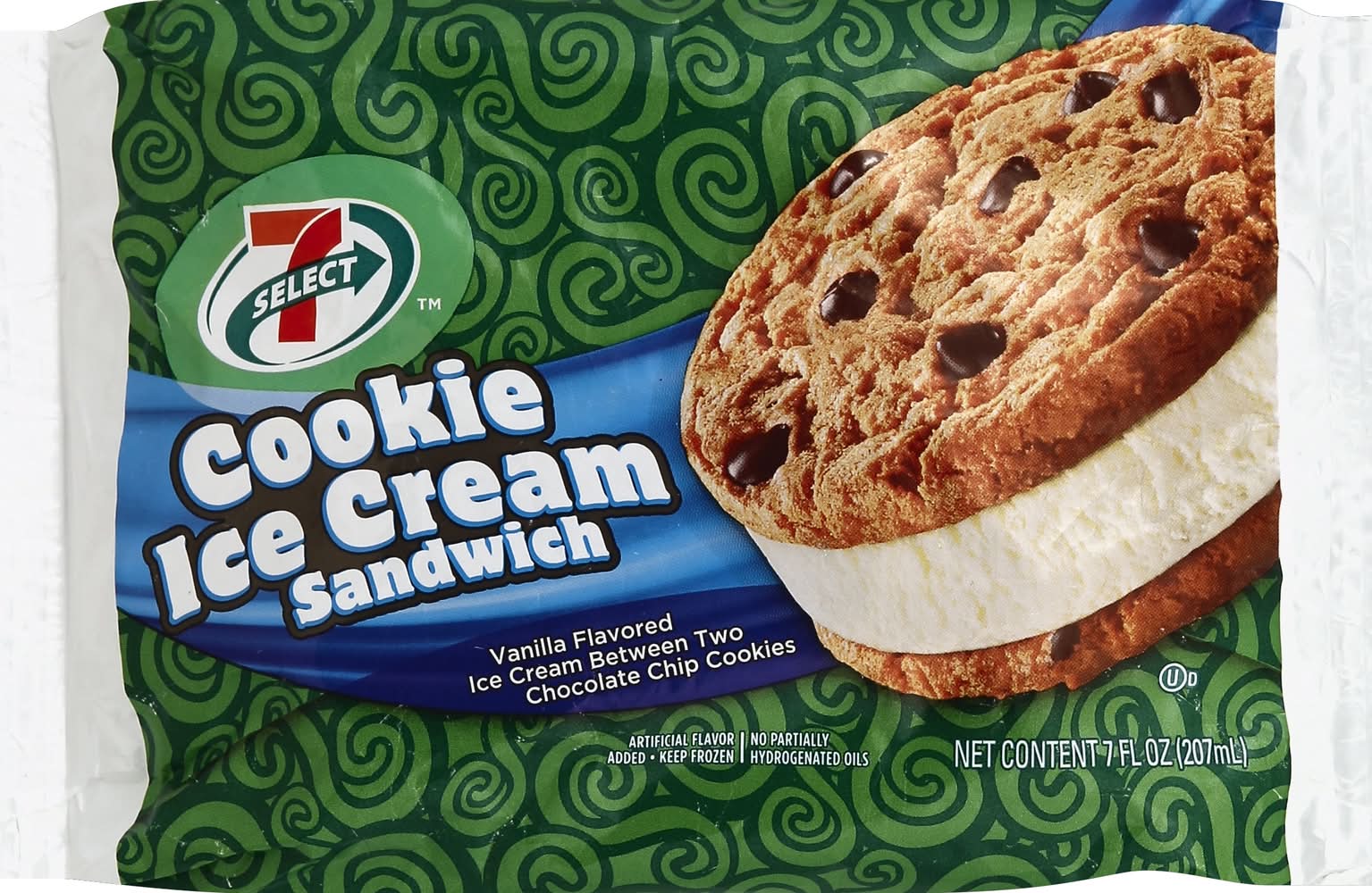 Vanilla flavored ice cream between two chocolate chip cookies. Artificial flavor added. No partially hydrogenated oils. Get double the deliciousness with two soft cookies loaded with rich, creamy vanilla ice cream. Our cookies are baked fresh, then paired with a velvety-smooth layer of real ice cream, so each and every bite tastes homemade. • Brand: 7-select • Flavor: Vanilla • kosher