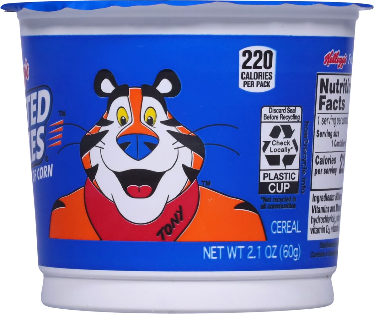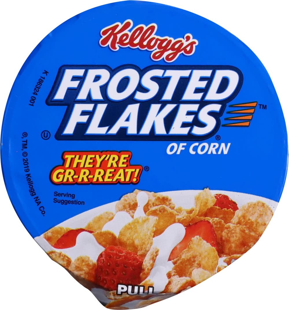 The frosting makes it sparkle. The corn makes it crunch. The sweet milk makes it Gr-r-reat! • Brand: Frosted flakes • kosher • Kellogg Sales Co., Battle Creek,MI,49016,USA. • Packaging: Reusable