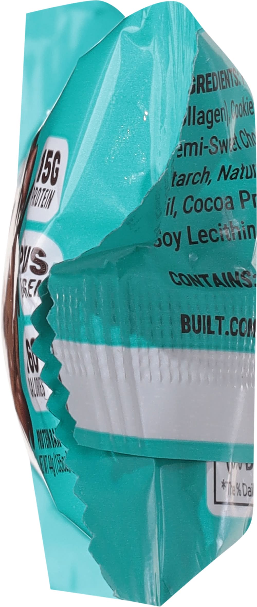 Satisfy your sweet tooth with guilt's cookie dough chunk puff protein candy bar, featuring a soft, fluffy cookie dough-flavored center, topped with real cookie dough pieces and covered in dark chocolate goodness. • Brand: Built • Flavor: Cookie dough chunk