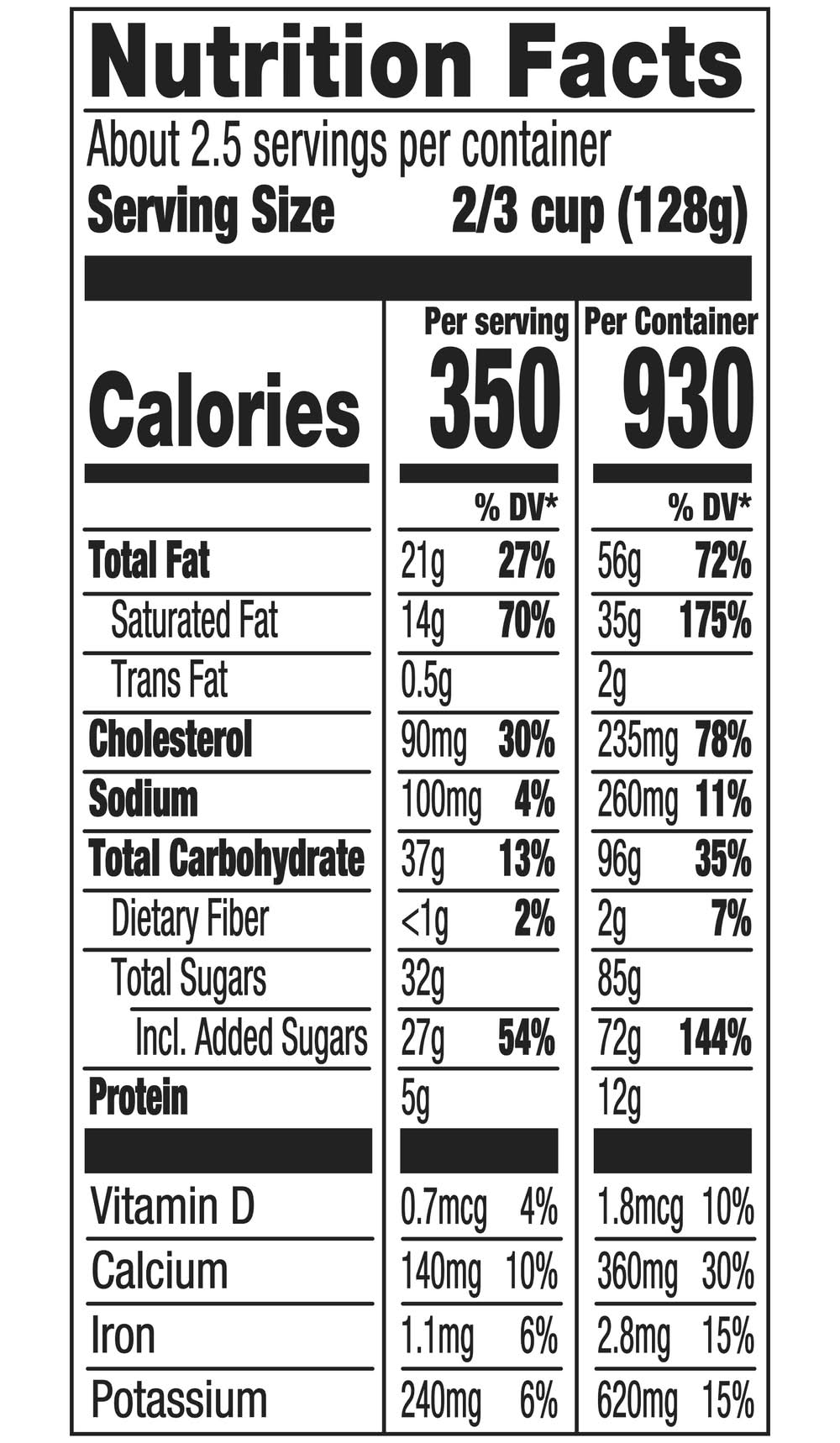 Ingredients: Cream, Skim Milk, Sugar, Powdered Sugar, Egg Yolks, Butter, Wheat Flour, Coconut Oil, Salt, Molasses, Graham Flour, Brown Sugar, Natural Flavor, Corn Syrup, Baking Soda, Butter Oil, Soy Lecithin, Cocoa Processed Contains: Milk, Wheat, Egg, Soy