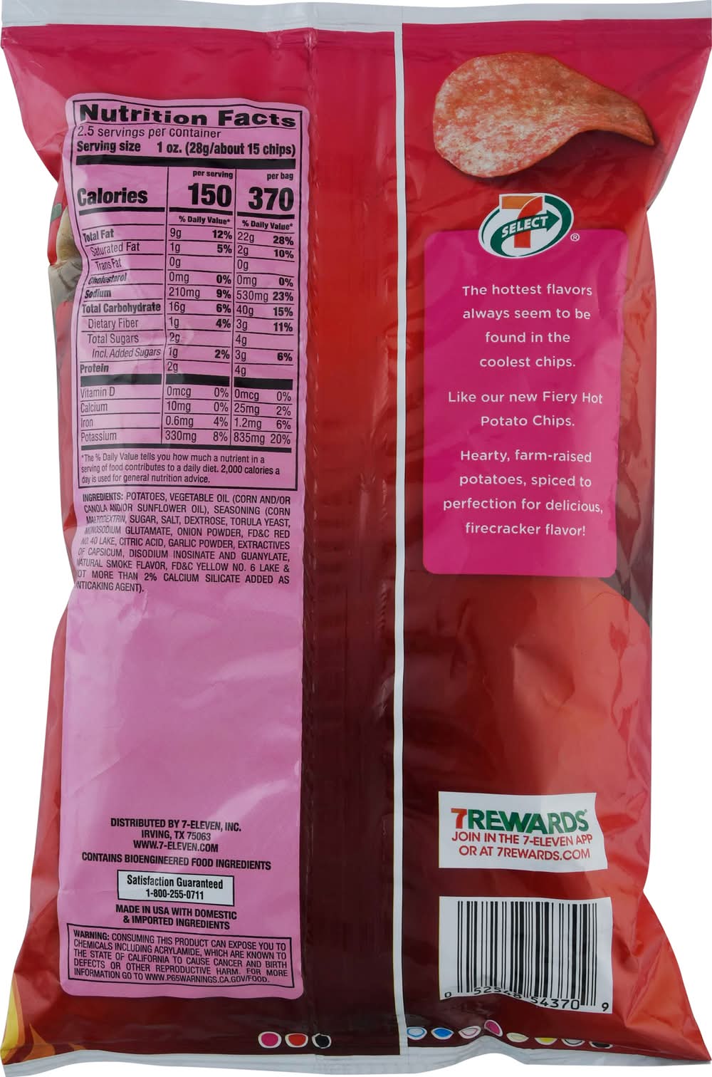 Perfectly cooked premium potato crisps spiced to perfection for delicious firecracker flavor. • Brand: 7-select • Flavor: Fiery hot • kosher