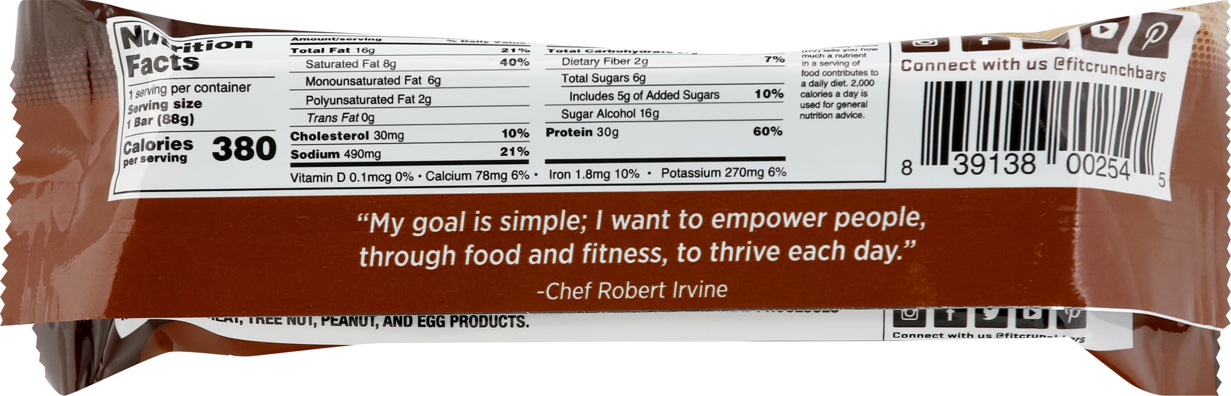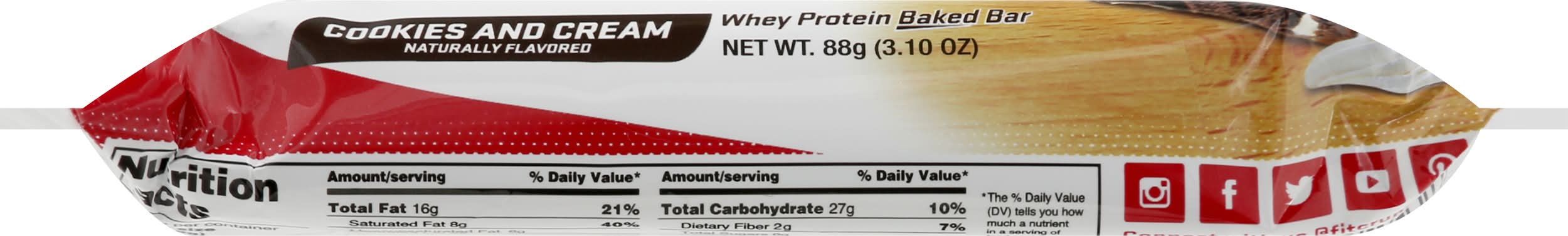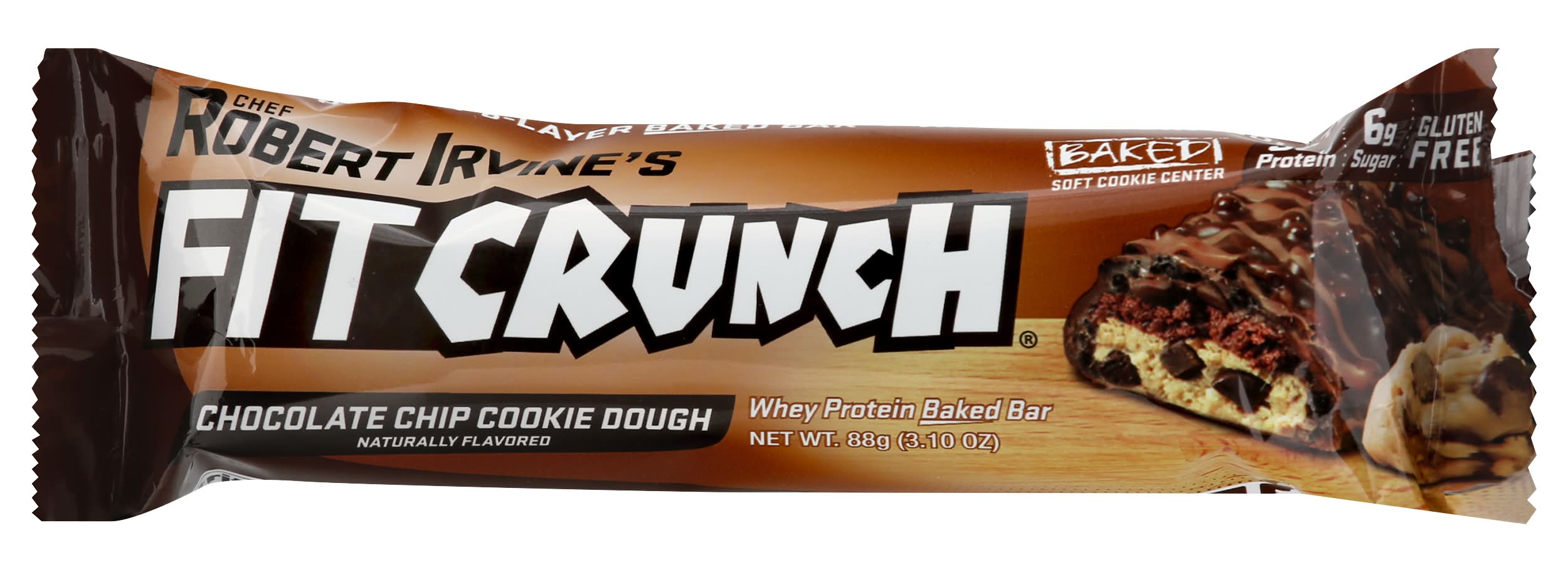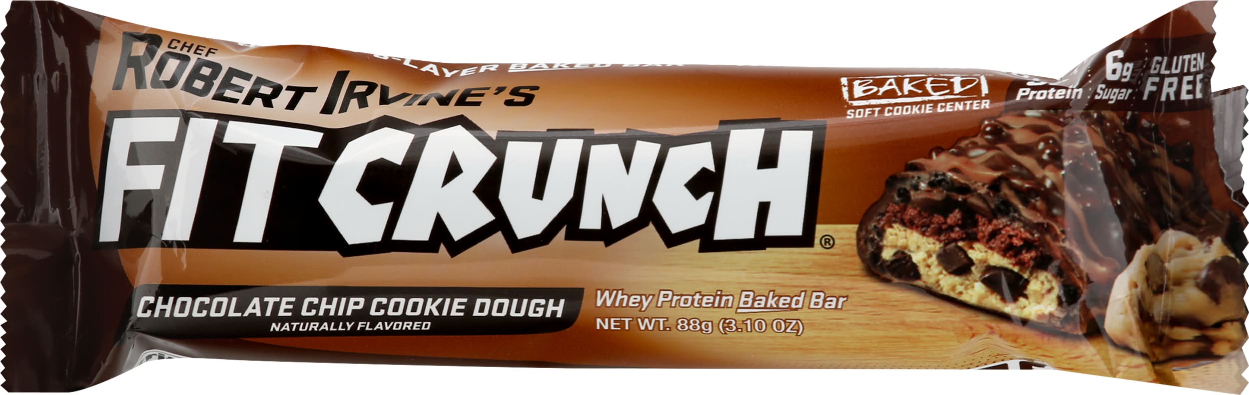Protein Bar, Whey, Chocolate Chip Cookie Dough, Baked • Brand: Fit crunch • Flavor: Chocolate chip cookie dough • gluten-free