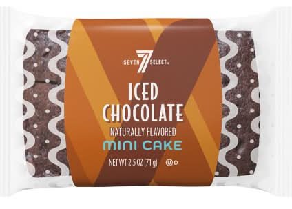 Chocolate sweet icing that glazes the top of a mini cake Brand: 7-select bakery