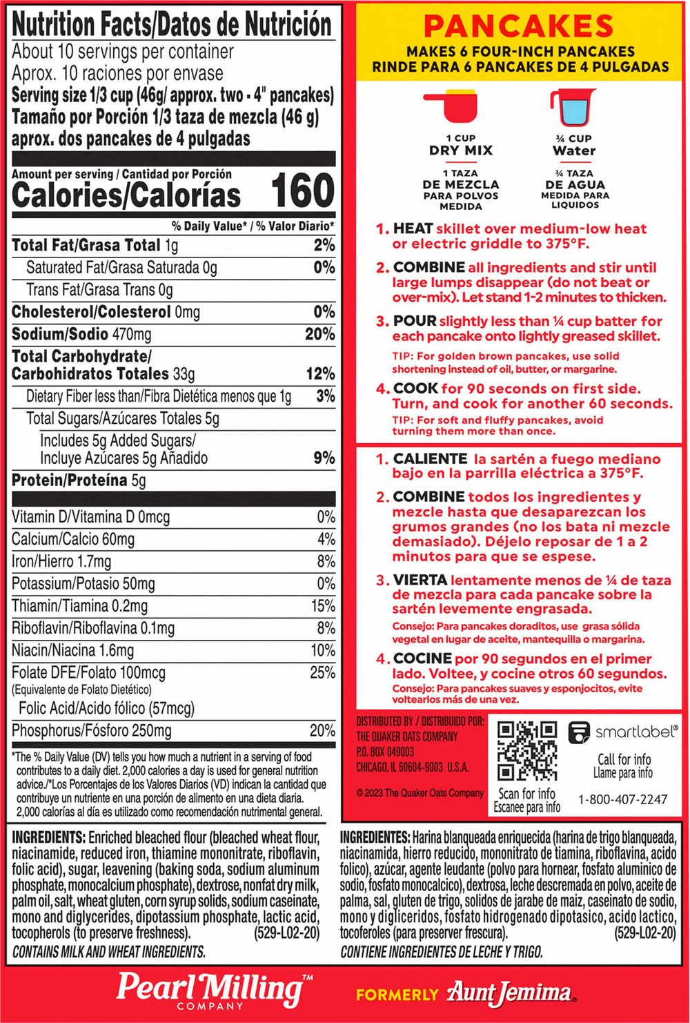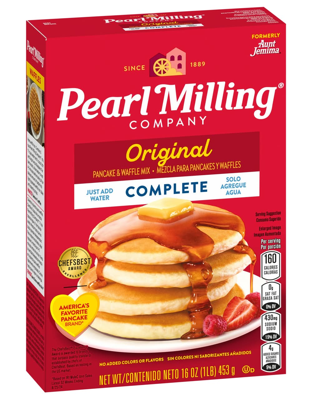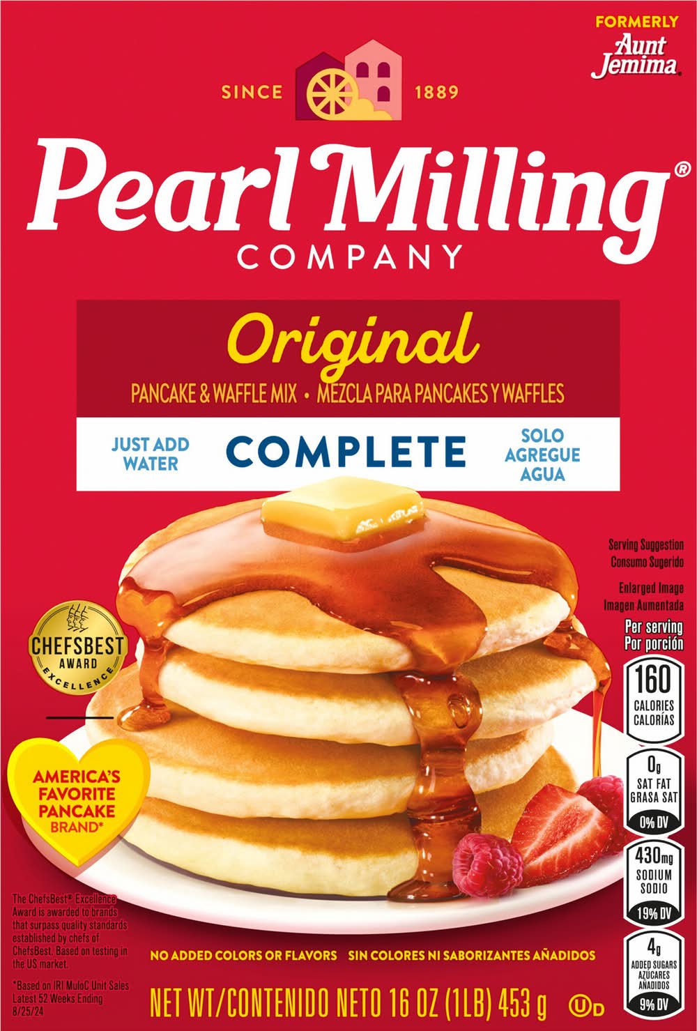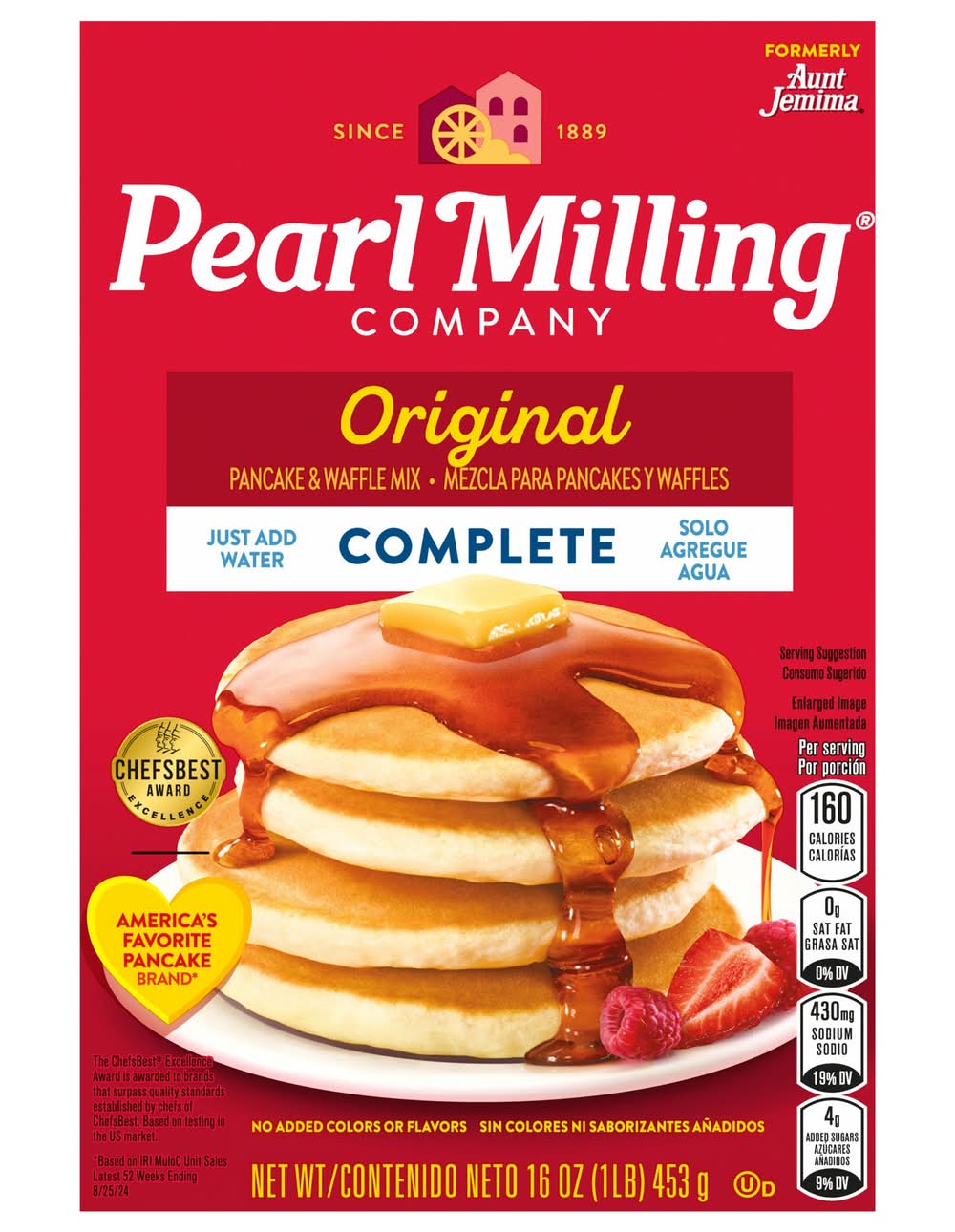 Make any moment memorable when you serve a stack of pancakes made with Aunt Jemima® Original Pancake & Waffle Mix. They’re perfectly fluffy, contain no artificial coloring or flavors and are a good source of calcium and iron, so you can feel good about serving them to your family. • Brand: Pearl milling company • kosher