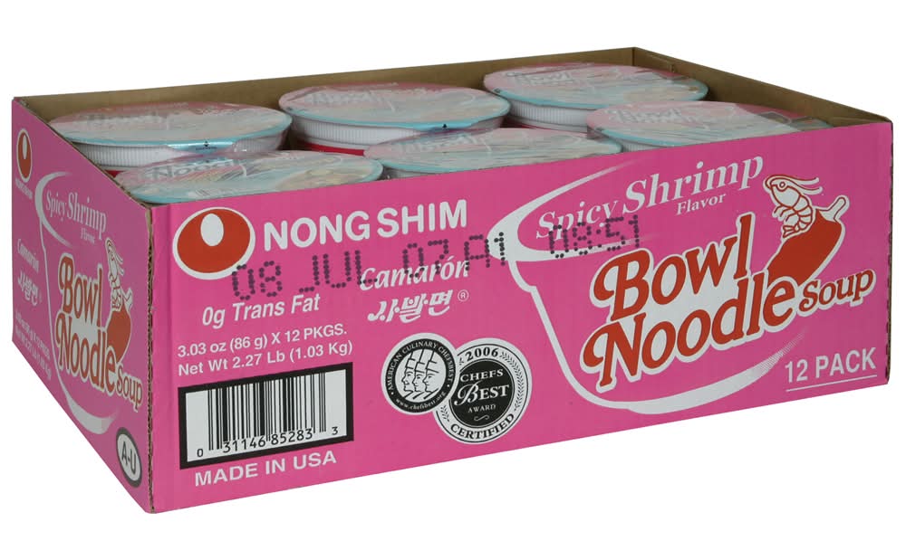 Nongshim Spicy Shrimp Bowl Noodle Soup (3.03 oz, 12 ct)