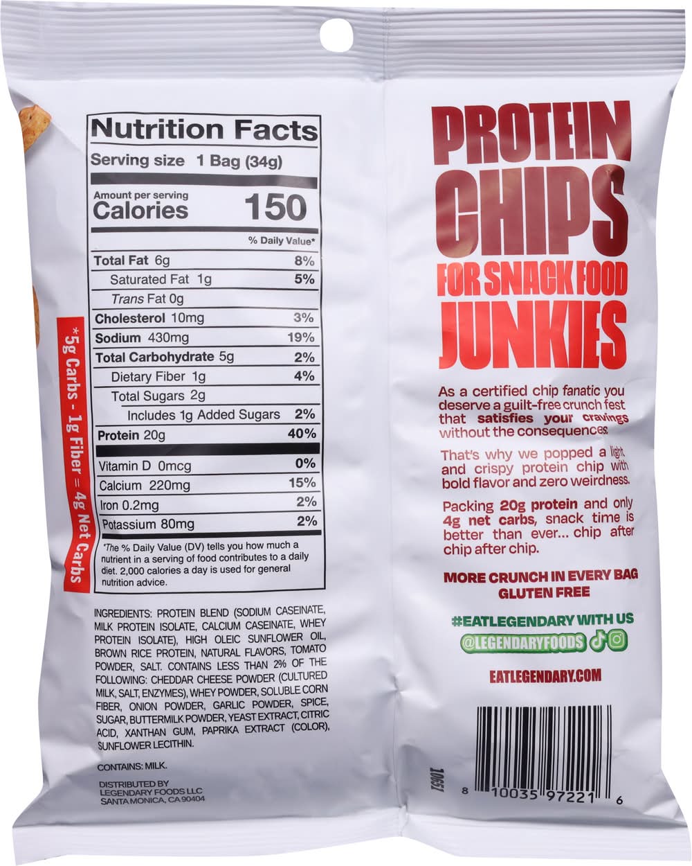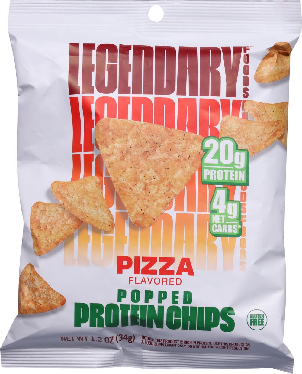 Protein Chips, Popped, Pizza Flavored • Brand: Legendary foods • Flavor: Pizza • gluten-free