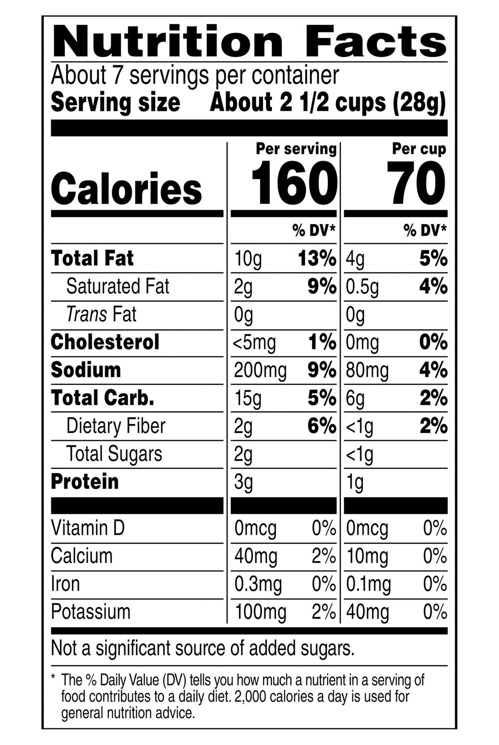 Ingredients: Popcorn, Vegetable Oil (Corn Canola and/or Sunflower Oil), Natural Flavors, Whey, Maltodextrin (Made from Corn), Buttermilk, Cheddar Cheese (Milk Cheese Cultures Salt Enzymes), and Salt Contains: Corn, Milk