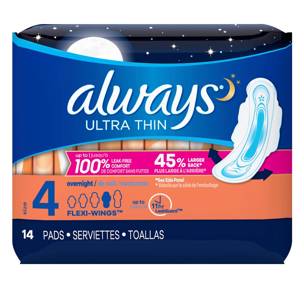 Always Overnight Flexi Wings Ultra Thin Pads (3.2 oz, 14 ct)