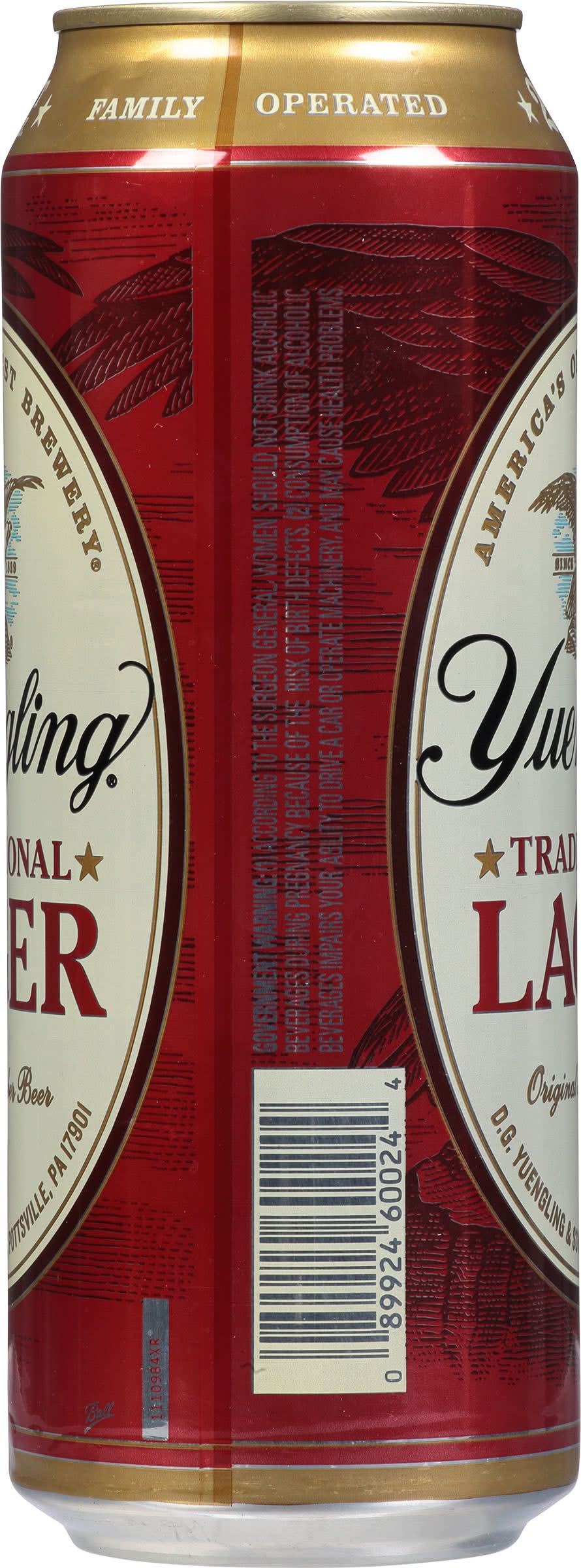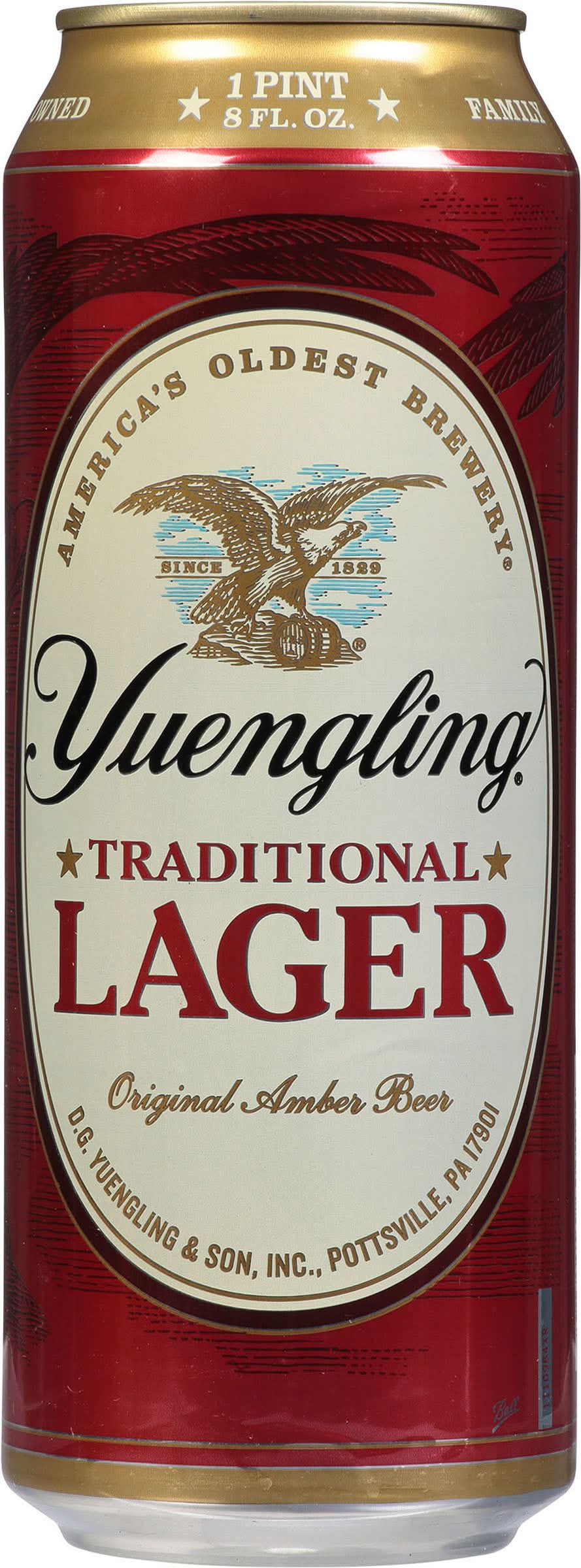 Rich amber color and medium-bodied flavor with roasted caramel malt for a subtle sweetness. This delivers a well-balanced taste with very distinct character. • Brand: Yuengling • Alcohol by volume: 4.5% • D.G. Yuengling & Son, Inc., Pottsville,PA,17901