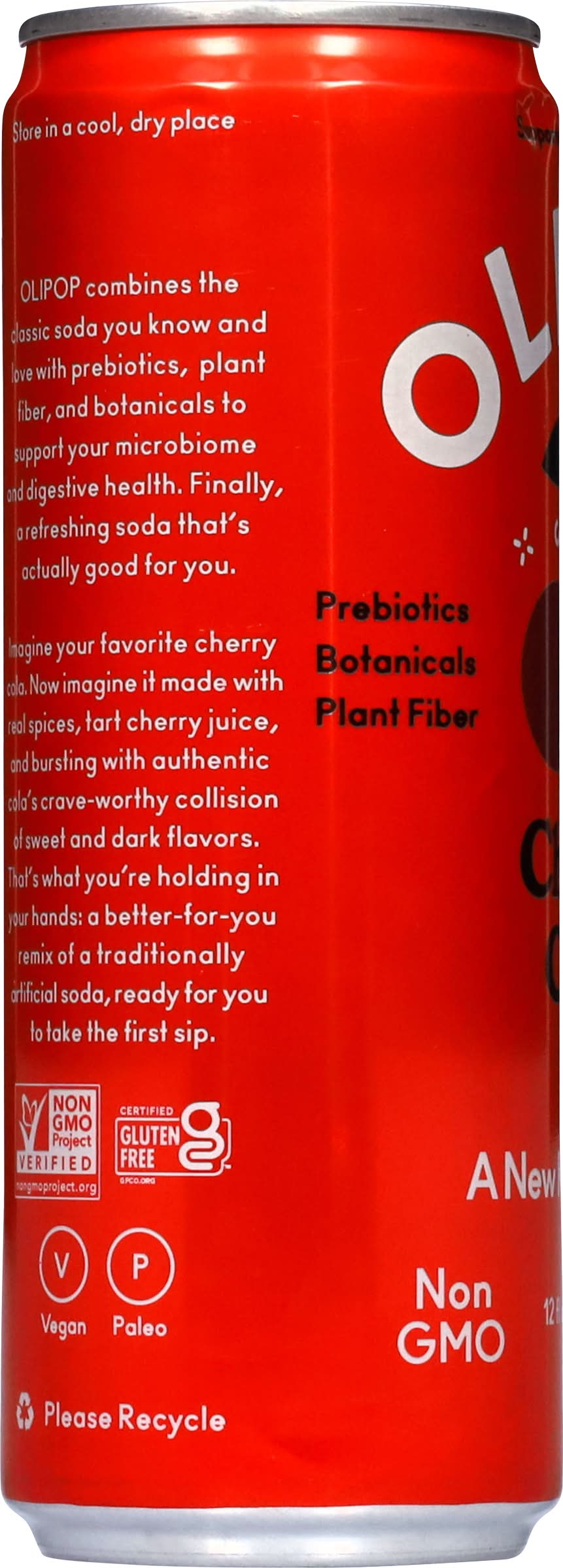 Cola, Cherry • Brand: Olipop • Flavor: Cherry cola • gluten-free, vegan, GMO-free
