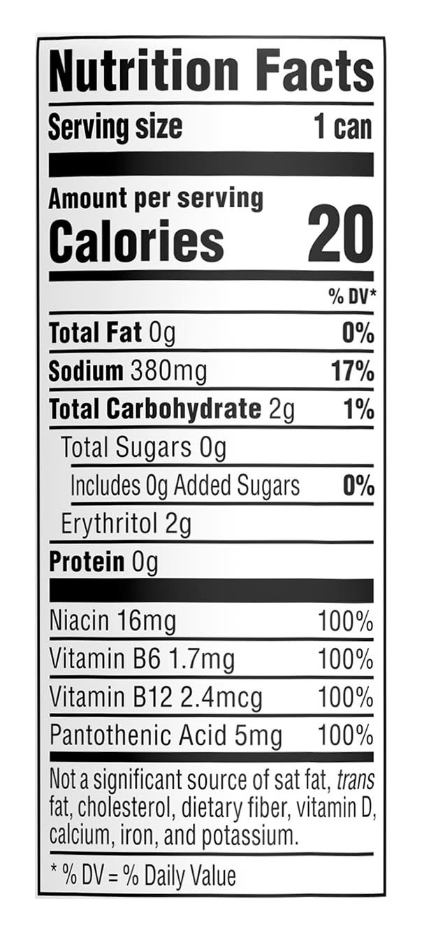Ingredients: Carbonated Water, Citric Acid, Erythritol, Taurine, Sodium Citrate, Natural Flavor, Caffeine, Sodium Benzoate (Preserves Freshness), Acesulfame Potassium, Sucralose, Glucuronolactone, Potassium Sorbate (Preserves Freshness), Inositol, Gum Arabic, Niacinamide (Vitamin B3), Calcium Pantothenate (Vitamin B5), Milk Thistle Extract, Glycerol Ester of Rosin, Panax Ginseng Root Extract, Pyridoxine Hydrochloride (Vitamin B6), Guarana Seed Extract, Red 40, Caramel Color, Blue 1, Cyanocobalamin (Vitamin B12) Contains: Milk Contains 24000mg of caffeine