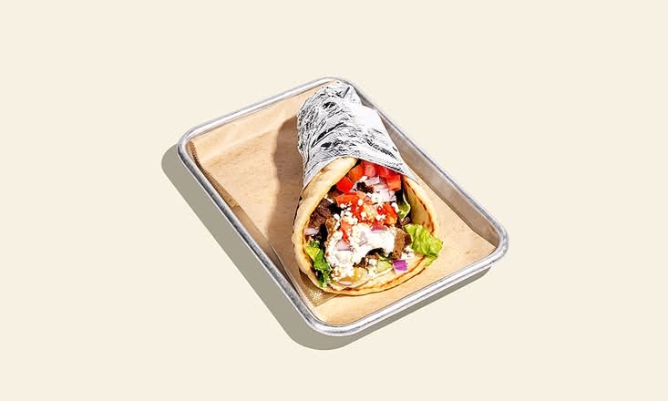 protein • tzatziki • onion • tomato • romaine & feta all wrapped up in a pillowy pita.