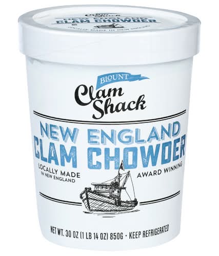 Ingredients: Cream, Clam Base [Cooked Clams (Clams, Water, Corn Starch), Salt, Clam Broth, Sugar, Potato Flour, Natural Flavor, Onion Powder, Codfish Powder]), Potatoes, Clam Meat, Onions, Contains 2% Or Less Of: Butter (Cream, Salt), Modified Corn and Tapioca Starch, Garlic, Water, Sea Salt, Nisin Preparation And Spice