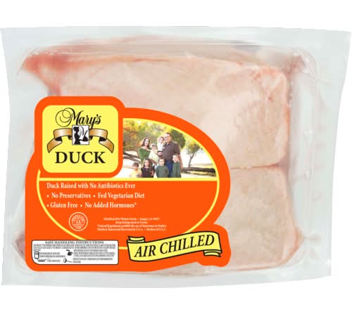 Marys skin-on duck breasts are:-No antibiotics ever-No preservatives-Fed a vegetarian diet-Contains no added hormones or steriods-Contains no allergens
