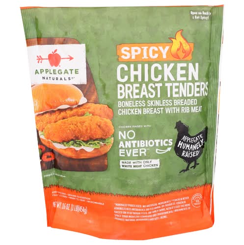 Ingredients: Boneless Skinless Chicken Breast With Rib Meat, Wheat Flour, Water, Rice Flour Contains Less Than 2% Of The Following: Sea Salt, Corn Starch, Garlic Powder, Leavening (Cream Of Tartar, Sodium Bicarbonate), Cane Sugar, Black Pepper, Onion Powder, Jalapeno Pepper, Potato Starch, Extractives Of Paprika, White Pepper, Red Pepper, Breading Set In Expeller Pressed Canola Oil