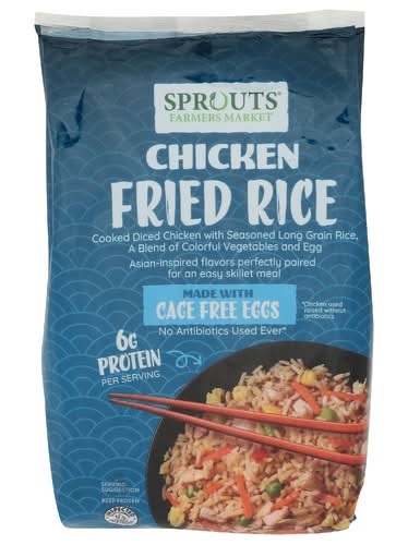 Ingredients: Cooked Rice (Water, Rice), Chicken Meat (Antibiotic Free Chicken Meat, Water, Potato Starch, Sea Salt), Soy Sauce (Water, Soybeans, Wheat, Salt), Egg (Cage Free Whole Eggs, Whole Milk, Corn Starch, Sea Salt, Ground White Pepper), Canola Oil, Corn, Mirin (Sugar, Water, Alcohol, Salt, Glutinous Rice), Carrots, Red Bell Pepper, Peas, Edamame, Sugar, Brown Sugar, Garlic (Garlic, Citric Acid), Salt, Toasted Sesame Seed Oil, Inactive Nutritional Yeast, Cyanocobalamin) (B12 Produced By Natural Fermentation Not Synthetic Or Animal Source), Black Pepper