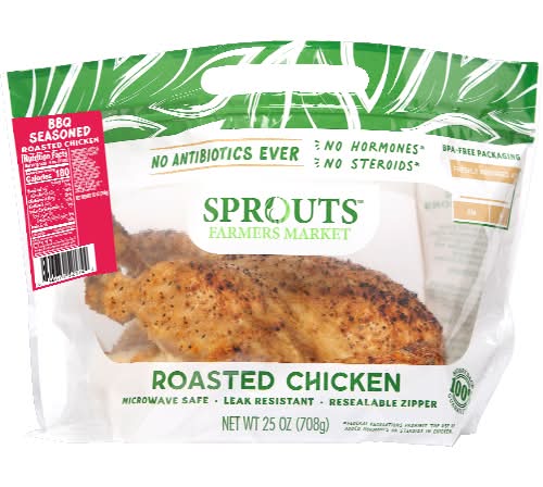 Herb Seasoned Roasted Chicken. No Antibiotics ever. No hormones, no steroids. Bpa-free packaging. Freshly prepared at store. Microwave safe. Leak resistant. Resealable zipper. 100% money back guaranteed.