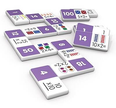Junior Learning Multiplication Dominoes makes learning math fun! Multiplication dominoes include a 28 piece set on thick plastic dominoes. Dominoes come in a collectors tin for storage. Children will love the feel of real dominoes as they complete the numeracy matching game. - 28 piece set of dominoes to teach multiplication - Thick plastic dominoes make manipulation easy to play the game - Grades K+ - Collectors tin for easy storage - Complete number matching multiplication games - Children will love the feel of learning with a real domino