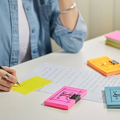 Make notes stand out with the brilliant colors of this 300-pack of Staples Business Essentials 3 x 5-inch line-ruled assorted neon index cards. Keep notes handy with these line-ruled assorted neon index cards. The line-ruled design makes the most of writing space, while the neon coloring delivers a brilliant backdrop. These Staples Business Essentials 3 x 5-inch line-ruled assorted neon index cards come in a pack of 300 to meet large note-taking needs. - Take notes, record recipes, or keep track of large projects with index cards - 3 x 5 narrow-ruled cards - Index cards come in assorted neon colors - This product is acid-free - 300 cards per pack